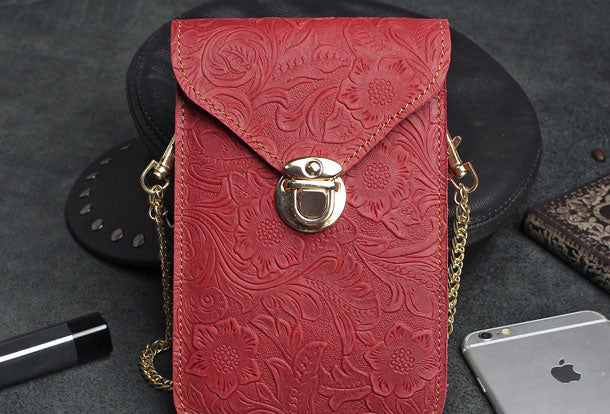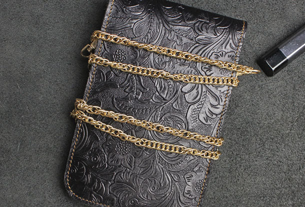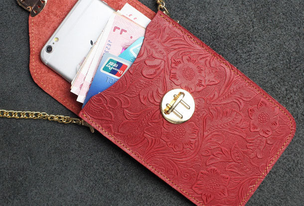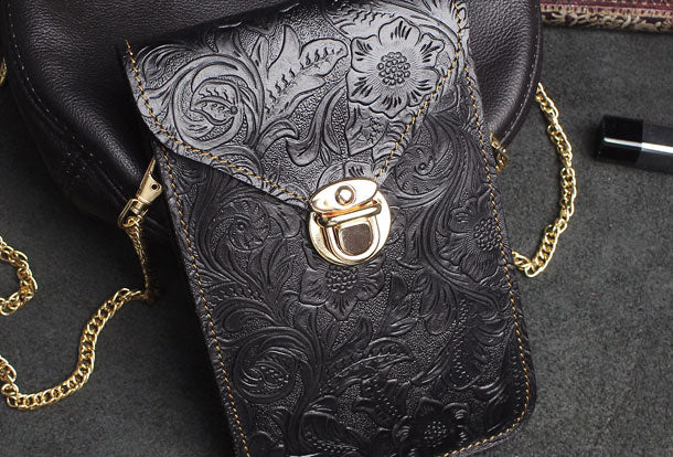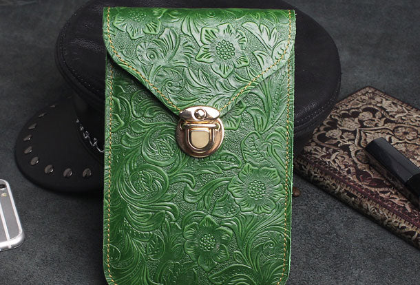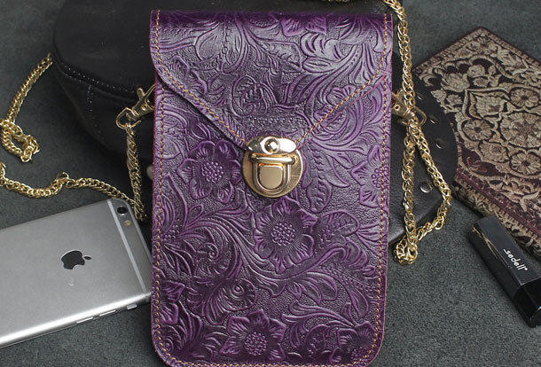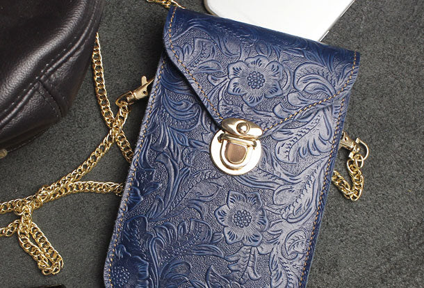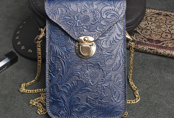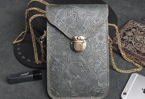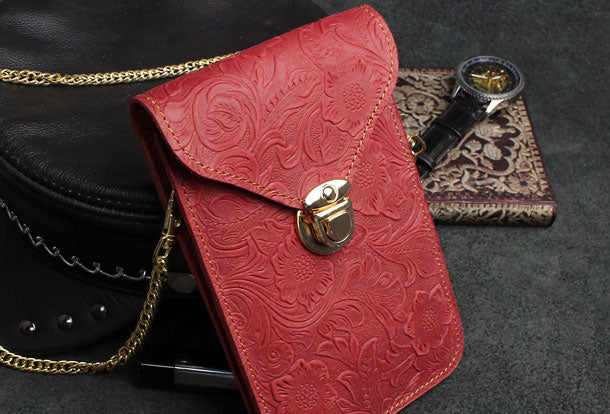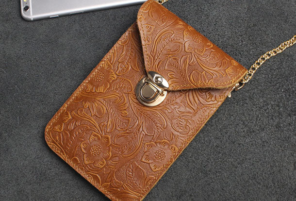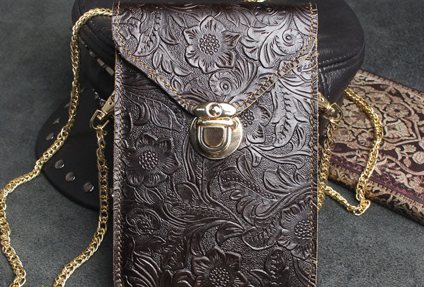 Design: Handmade phone leather shoulder purse bag wallet flowral leather billfold wallet for men women