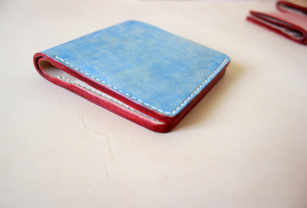 This is Handmade blue??pretty cute vintage retro hand dyed leather billfold ID card photo holder bifold wallet for women/lady girl gift for her.The wallet is biifold,color is blue ?,There are ?1 full size bill slots,4 ID slots and 1 photo pouch~Hand-made in the traditional method with punched holes and saddle stitching by hand.