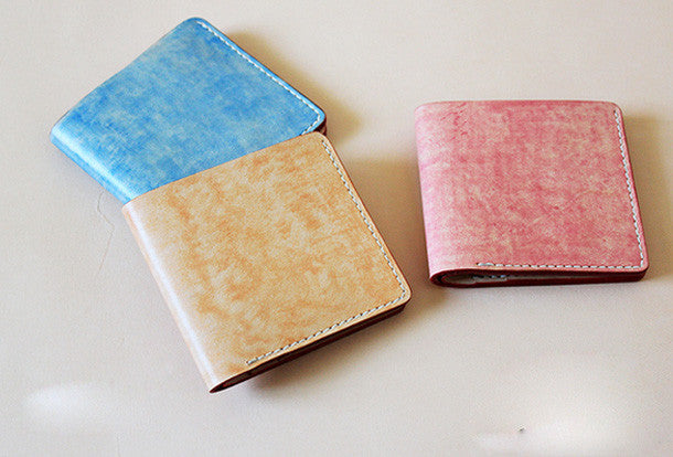 This is Handmade blue??pretty cute vintage retro hand dyed leather billfold ID card photo holder bifold wallet for women/lady girl gift for her.The wallet is biifold,color is blue ?,There are ?1 full size bill slots,4 ID slots and 1 photo pouch~Hand-made in the traditional method with punched holes an