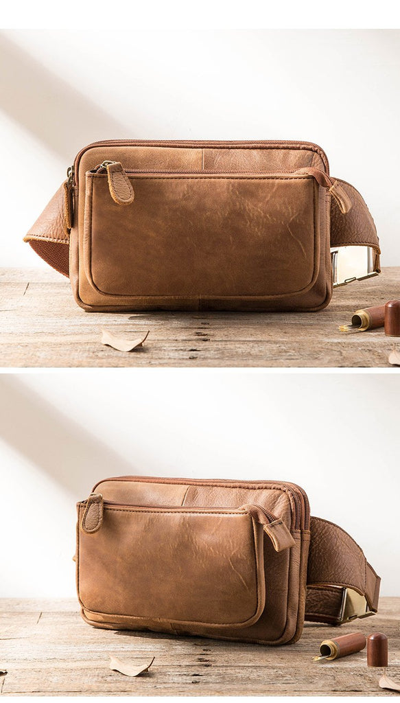 Style: Brown Handmade Leather Mens 8inches Waist Bag Chest Bag Multifunction One Shoulder Backpack for Men