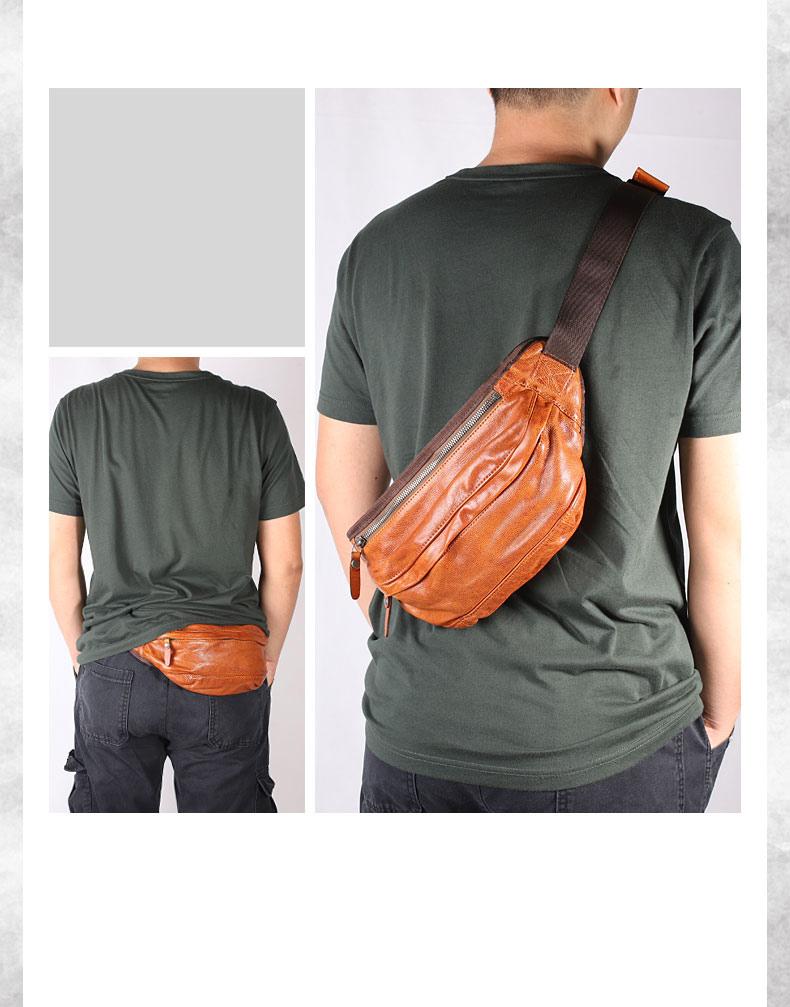 Style: Brown MENS Suede 8 inches Black LEATHER FANNY PACK Chest Bag WAIST BAGS For Men