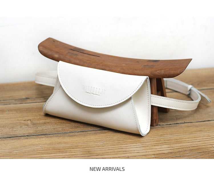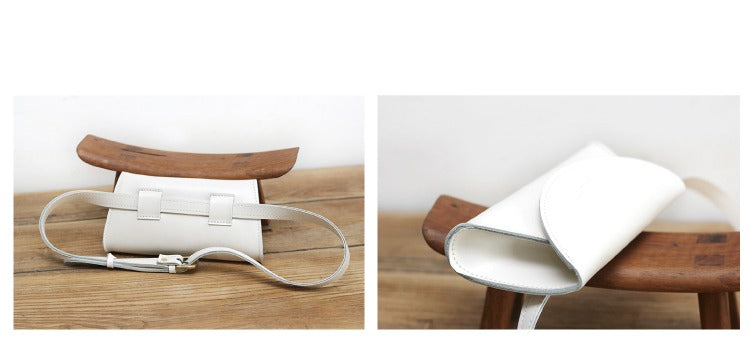 Cute Women Leather Fanny Pack White MIni Leather Sling Bag Small Waist BAG FOR WOMEN