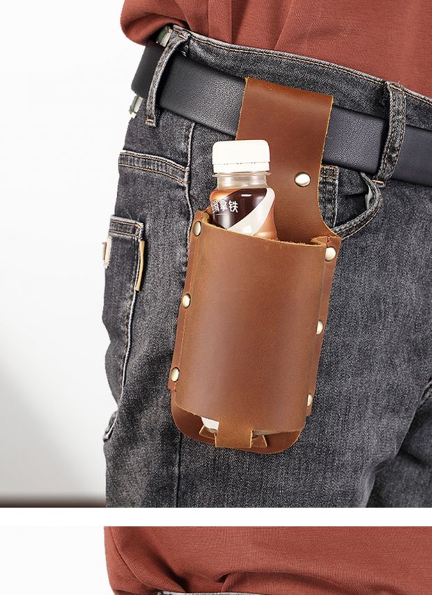 Leather Water Bottle Belt Holder Pouch â€?a rugged and stylish accessory designed for convenience and durability. This Leather Drink Bottle Belt Holder securely attaches to your belt, allowing you to carry your favorite beverages—whether it’s a water bottle, beer, or any other drink—hands-free and with ease.
