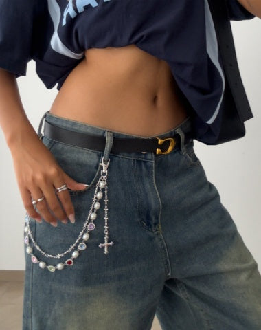 The beauty of this Gold Wallet Chain lies in its ability to adapt to different styles and occasions. Whether you're dressing up for a special event or adding a touch of elegance to your daily wardrobe, the pearl and heart elements keep it soft and feminine, while the cross pendant adds personal meaning. This Double Wallet Chain proves that you can embrace both trend-forward style and timeless elegance in one beautiful accessory.