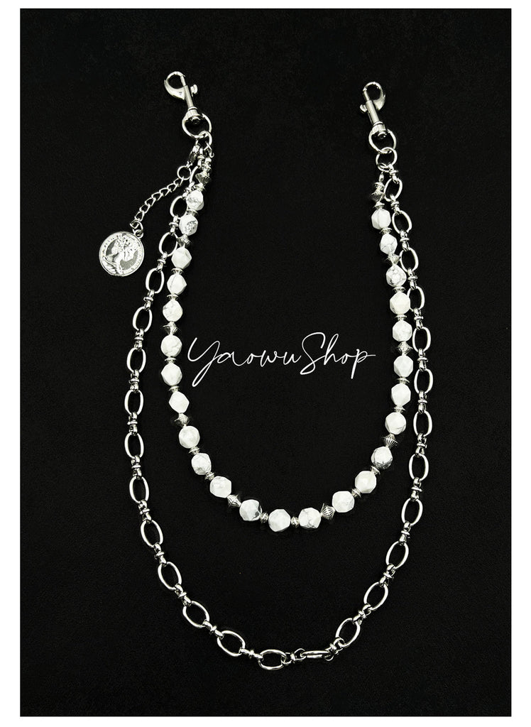 Design: Beaded Wallet Chain Womens White Stone Wallet Chain Double Wallet Chain