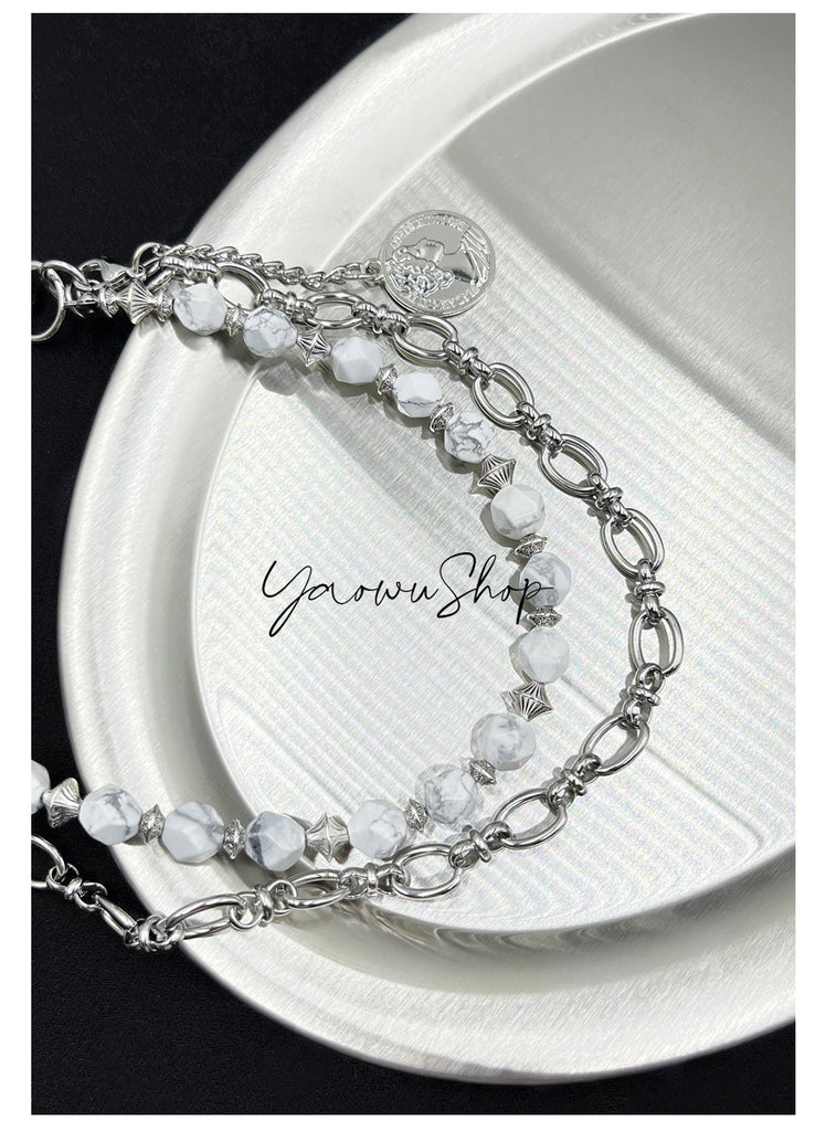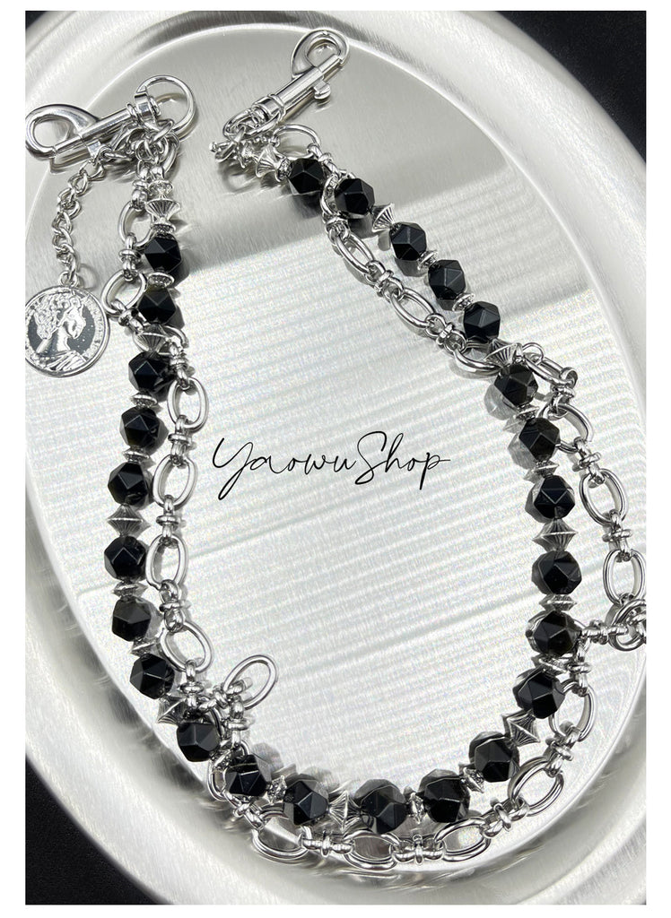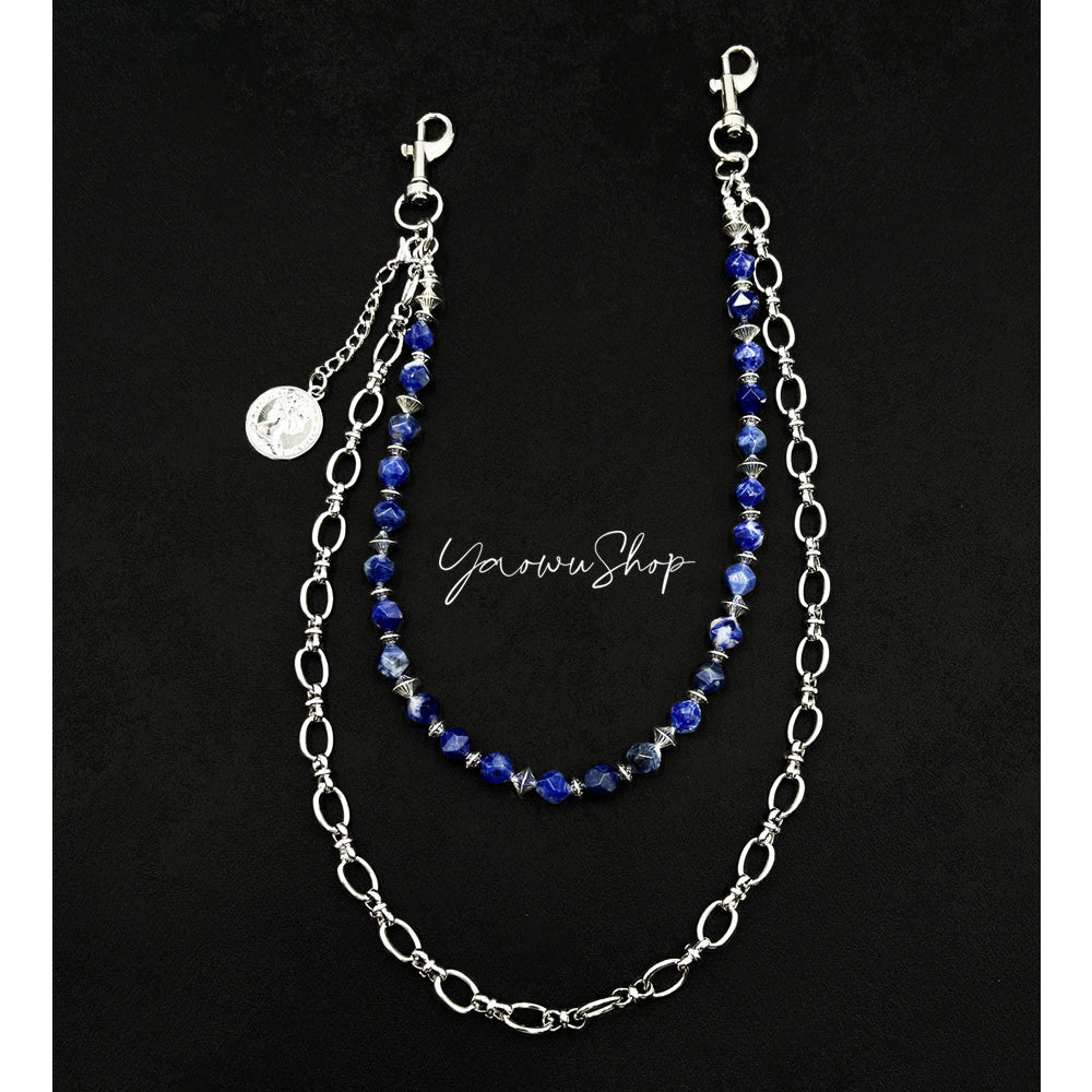 Discover the perfect fusion of industrial edge and natural elegance with our striking Stone Wallet Chain, a masterfully crafted accessory that balances bold statement-making with versatile wearability. This exquisite Double Wallet Chain features a sophisticated two-layer design, combining a dynamic 63cm long chain of interlocking silver-toned alloy rings in a unique large-within-small configuration, paired with a refined 53cm short chain of genuine white obsidian stones alternating with stainless steel geometric beads. This versatile Women Wallet Chain creates a captivating contrast between industrial strength and organic beauty, offering a statement piece that transitions effortlessly from daytime professionalism to evening edge.