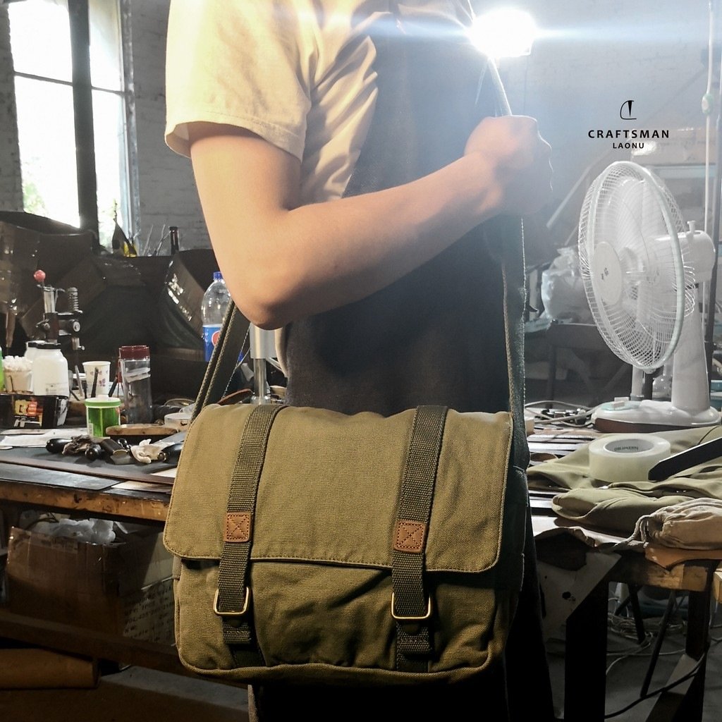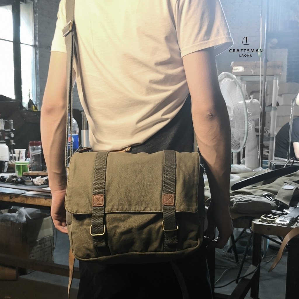 Design:Army Green Canvas Mens Black Sling Bag One Shoulder Pack Sling Pack Bag For Men