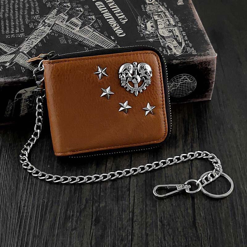 Design: Badass Brown Leather Men's Bifold Small Biker Wallet Chain Wallet Wallet with chain For Men