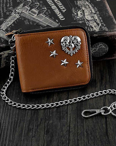 Style: Badass Brown Leather Men's Bifold Small Biker Wallet Chain Wallet Wallet with chain For Men