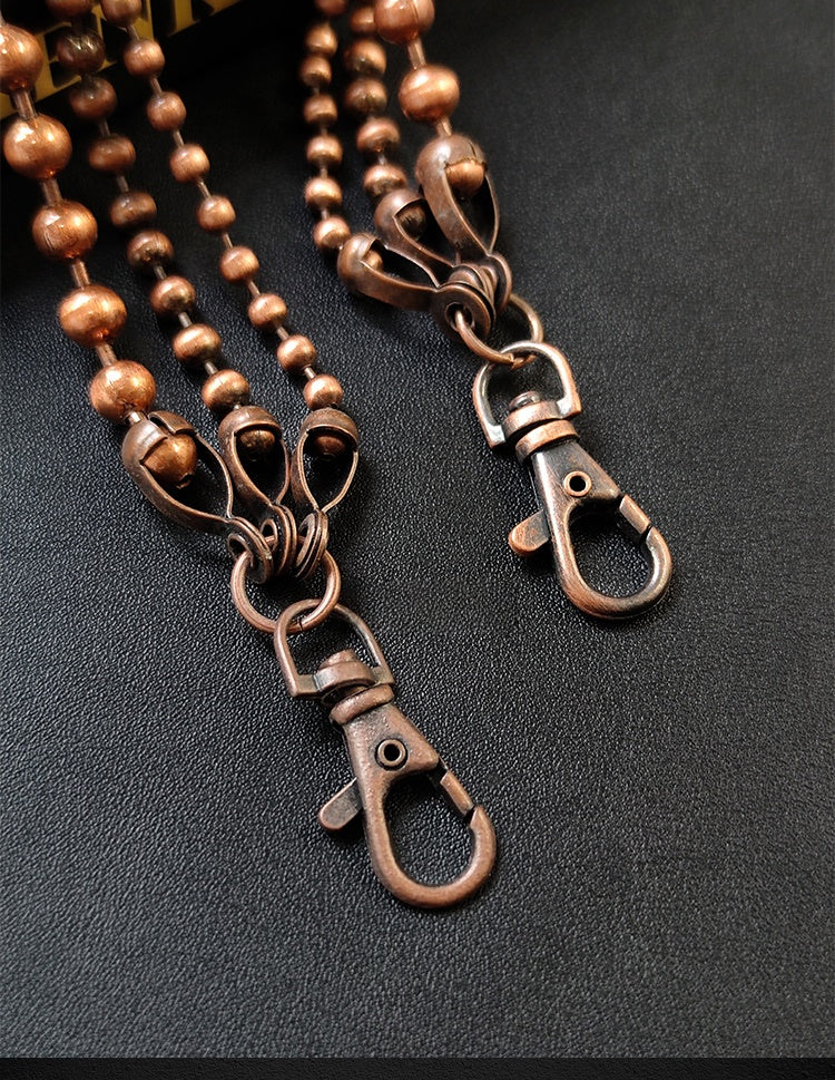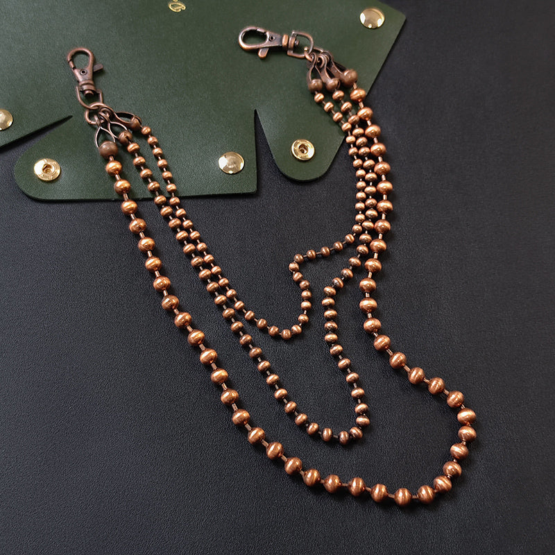 This Long Wallet Chain isn't merely an accessory—it's a conversation starter, an artistic expression, and a test of styling courage. The dramatic graduated beads and warm copper tones create a piece so distinctive that it will inevitably become the centerpiece of any look.