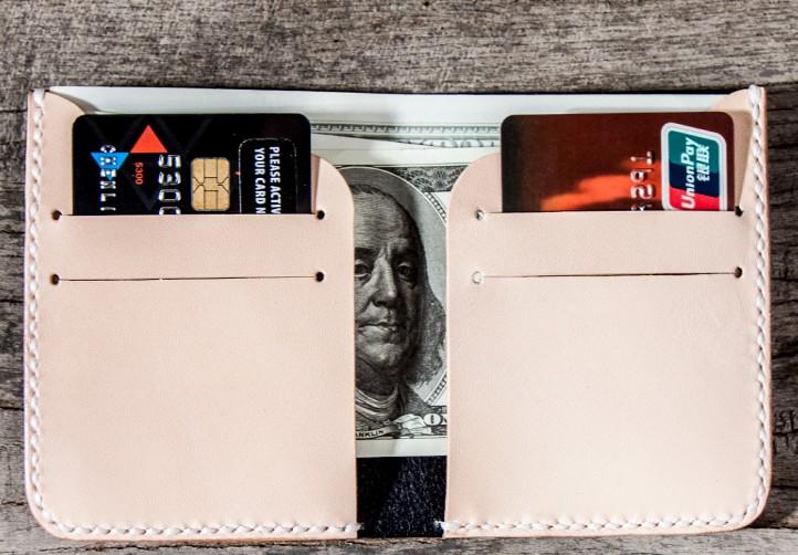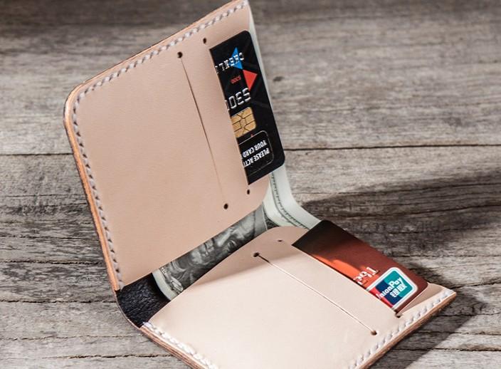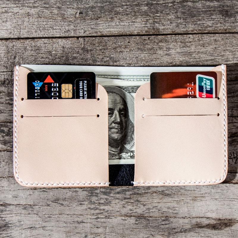 Design: Beige Leather Men Slim Small Wallet Bifold Small Wallet for Men