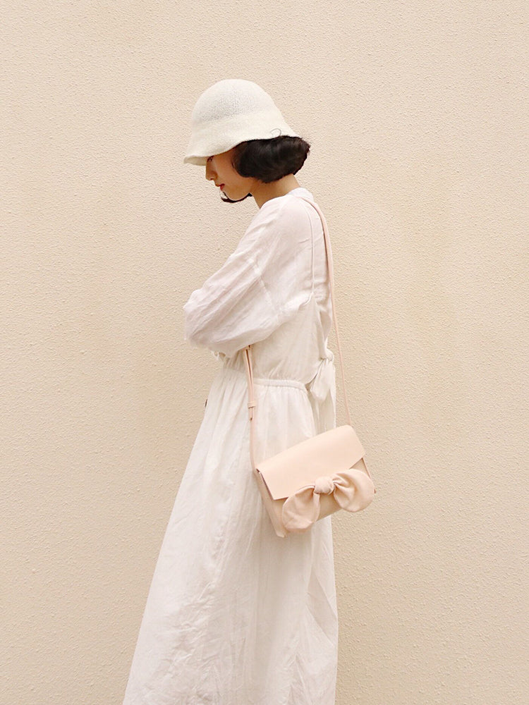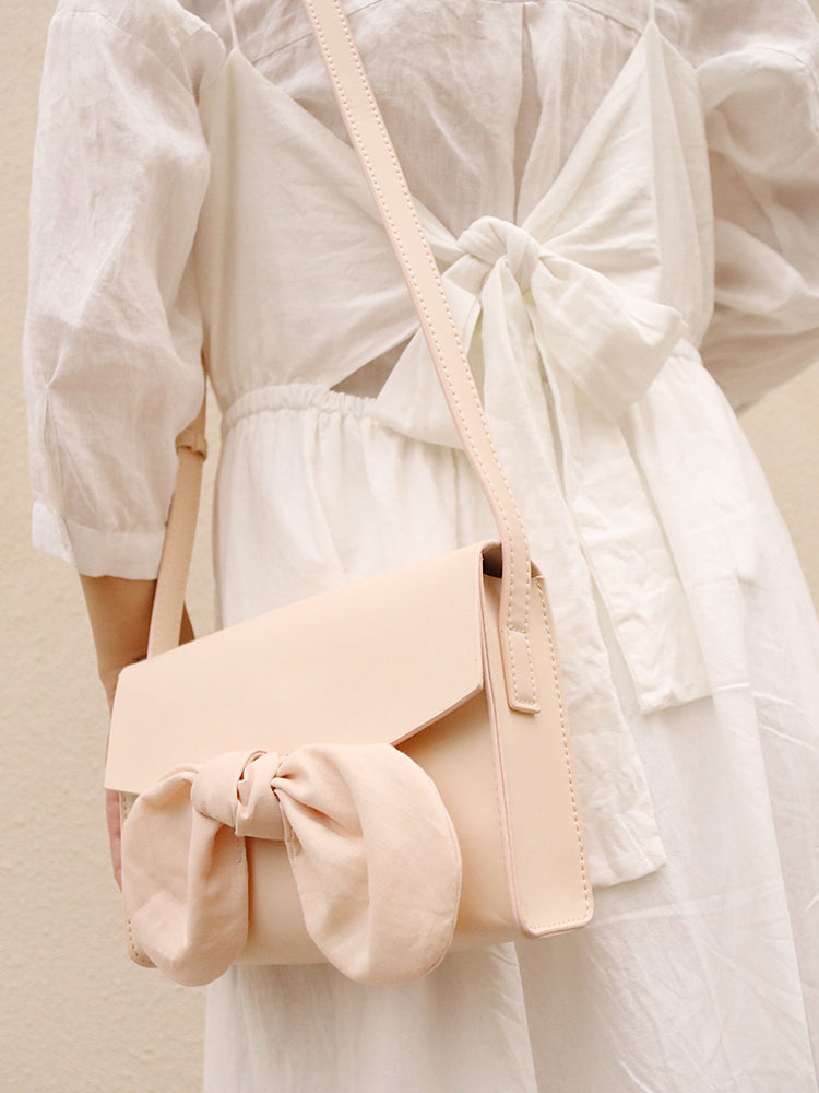 Design: Beige LEATHER WOMEN Bowknot SHOULDER BAG FOR WOMEN