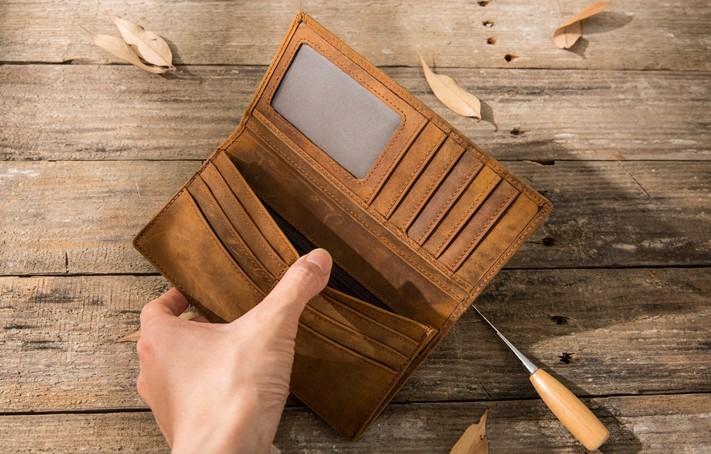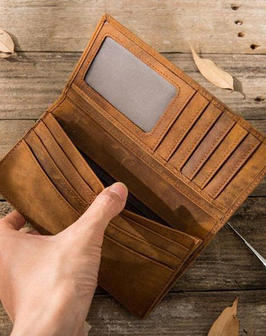 Design: Cool Mens long Wallet Leather Vintage Wallet Long Wallets for Men