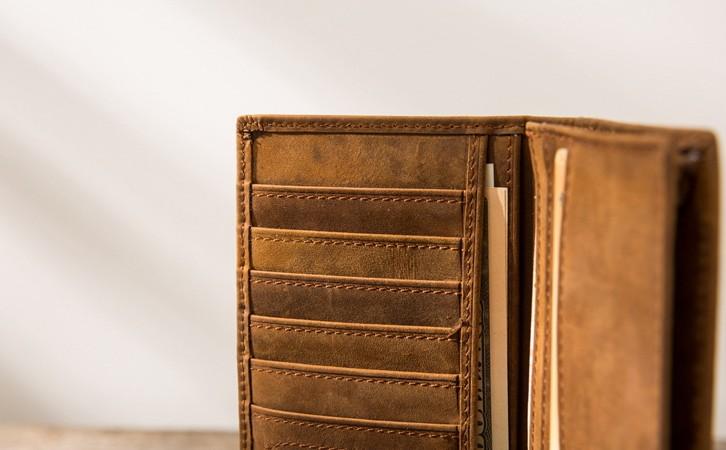 The use of crazy horse leather, a type of full-grain leather, gives this wallet its unique character. The leather is treated with a special wax, which enhances its durability and imparts a distinctive, rustic look. Over time, the leather develops a rich patina, adding to its charm and making each wallet truly unique. This type of leather is known for its strength and resilience, ensuring that your wallet can withstand the rigors of daily use while looking better with age.
