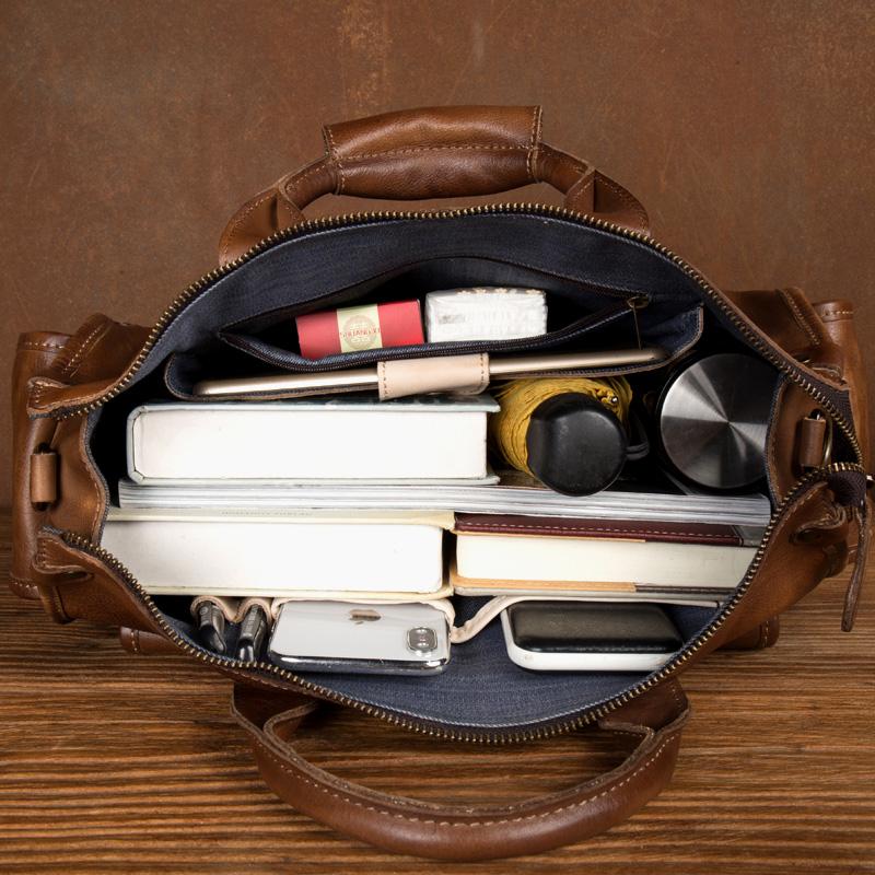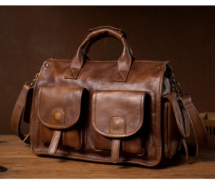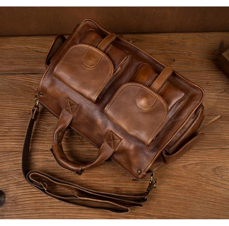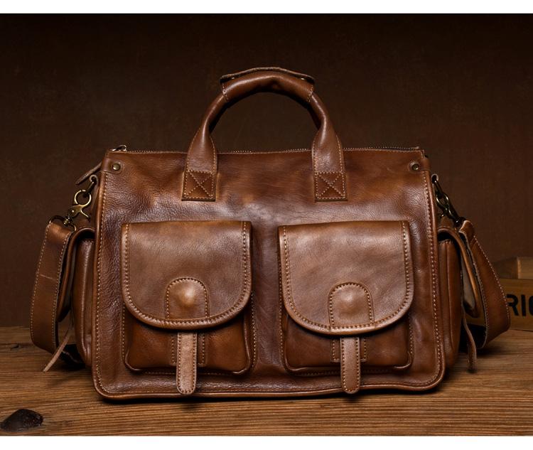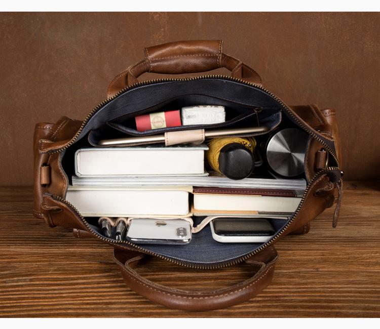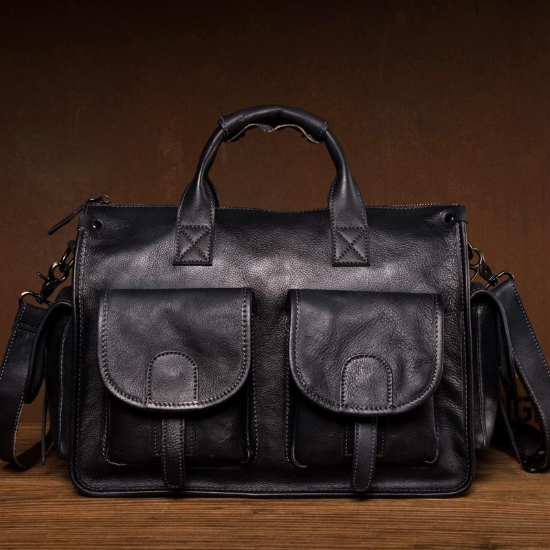 Style: Black Brown Leather Mens 14 inches Briefcase Laptop Bag Business Bag Work Bag for Men