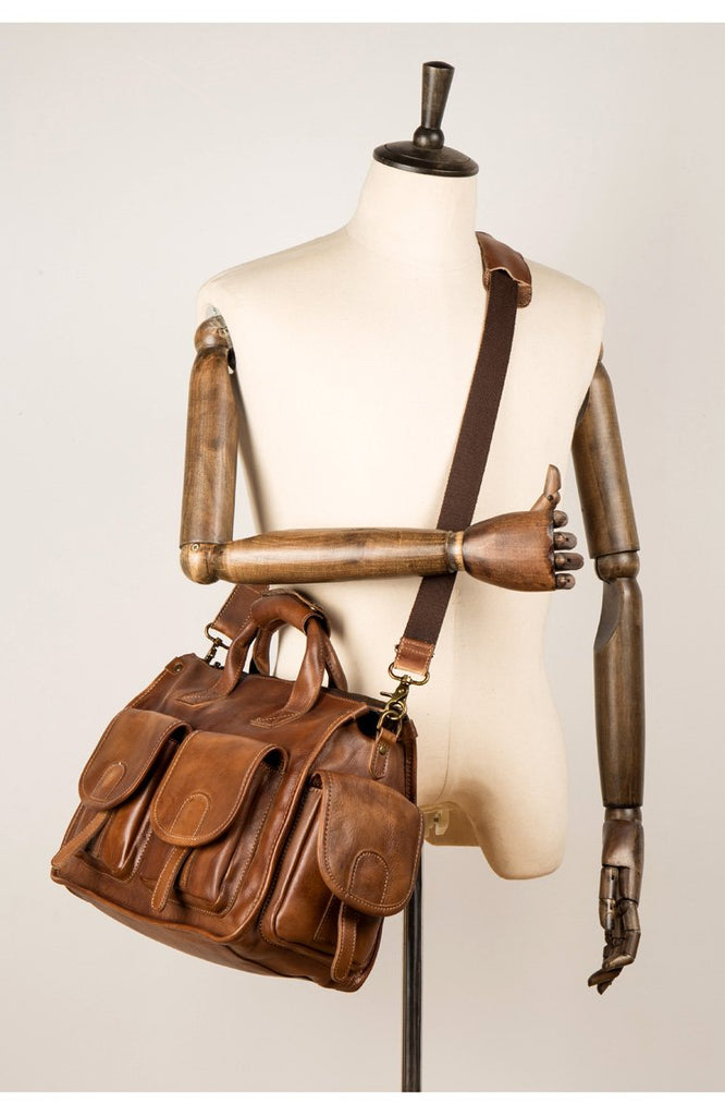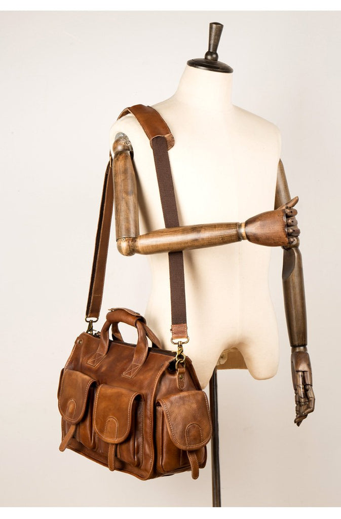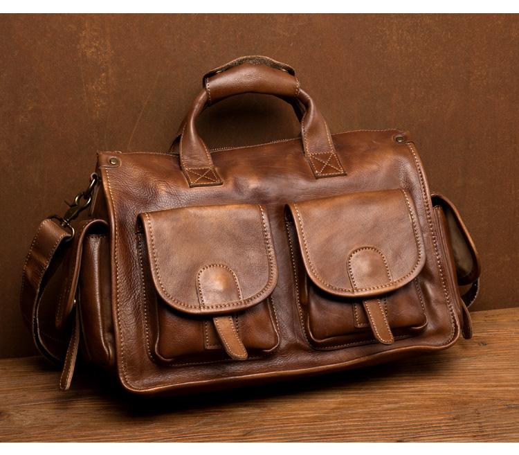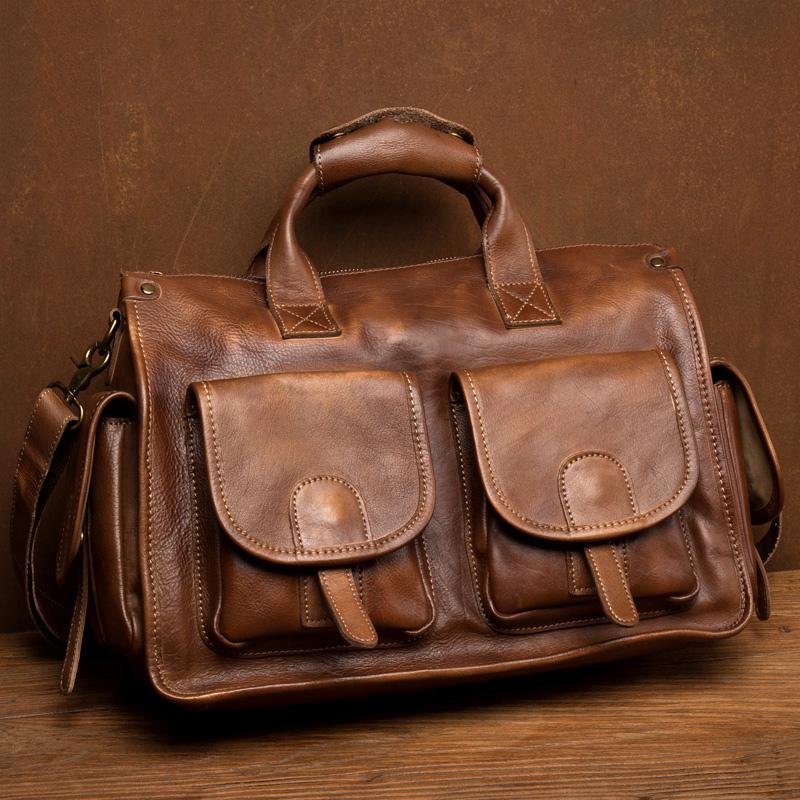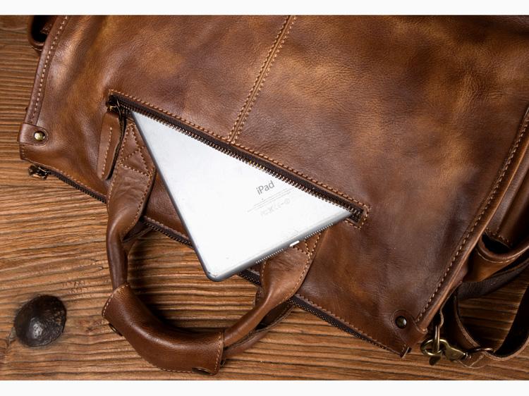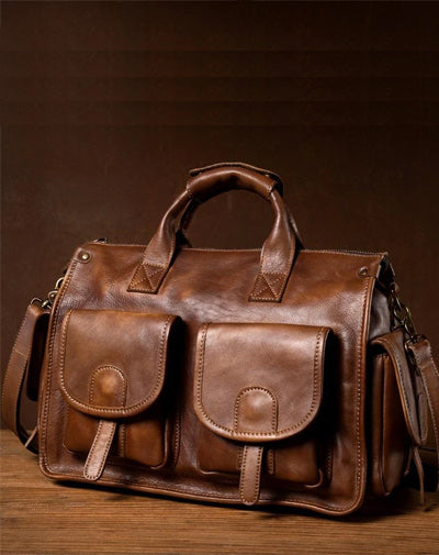 Style: Black Brown Leather Mens 14 inches Briefcase Laptop Bag Business Bag Work Bag for Men