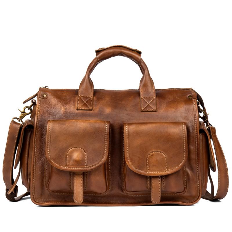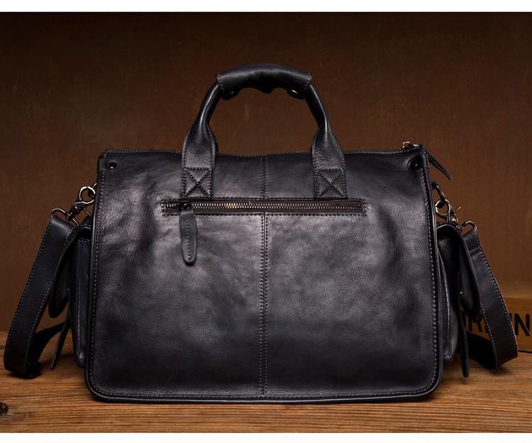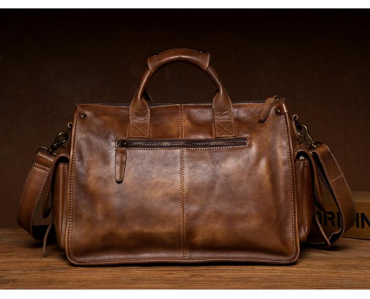 Design: Black Brown Leather Mens 14 inches Briefcase Laptop Bag Business Bag Work Bag for Men