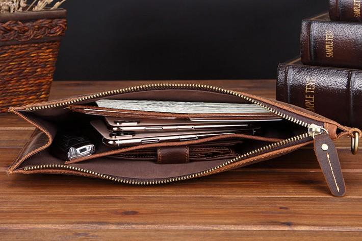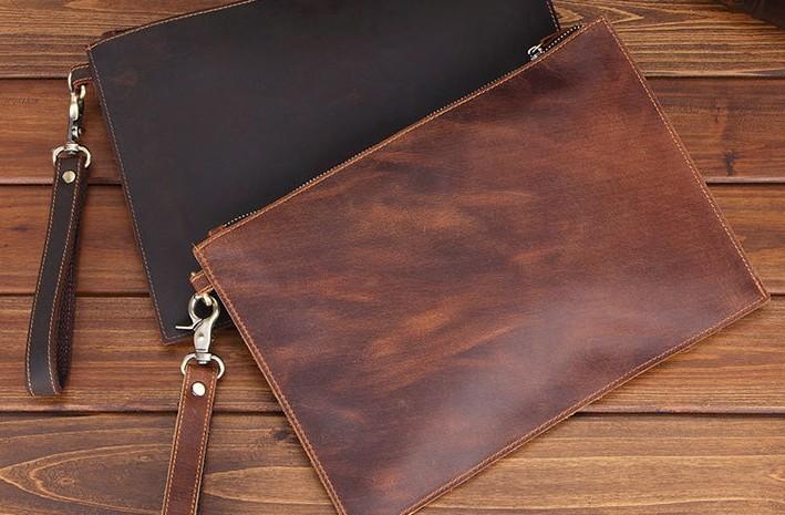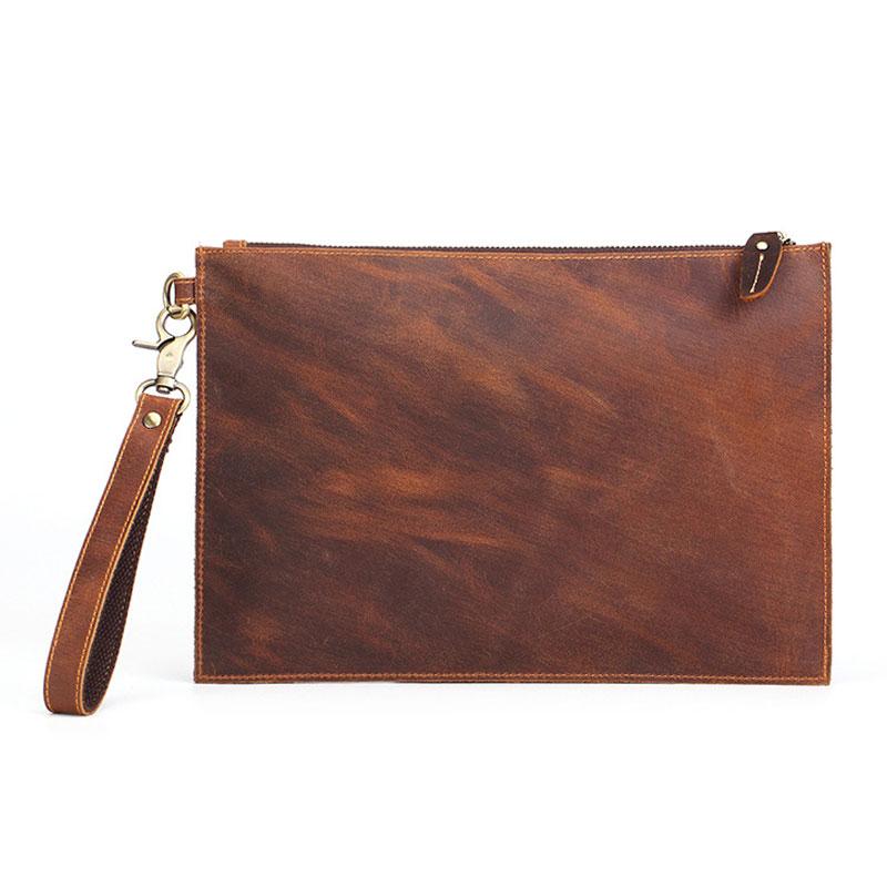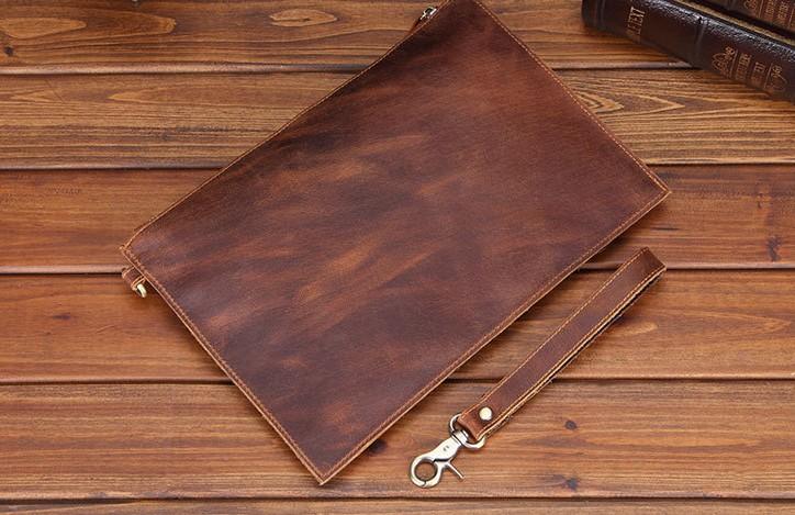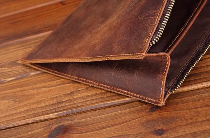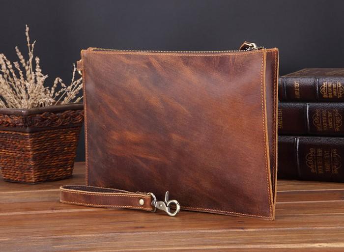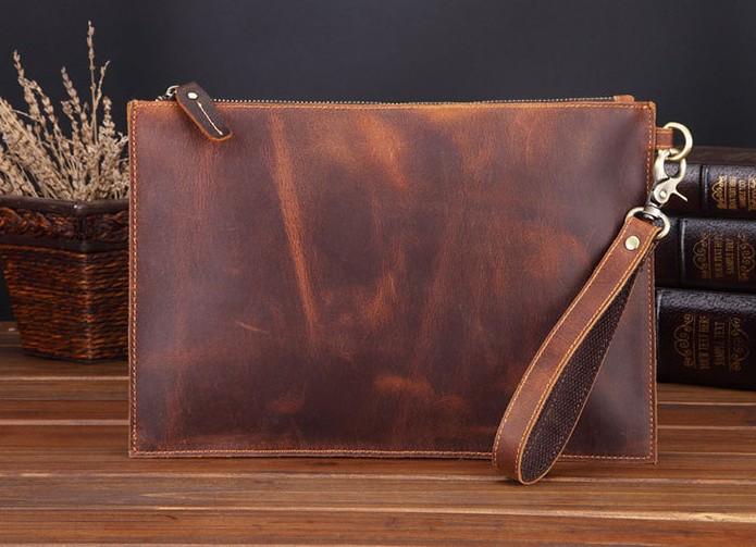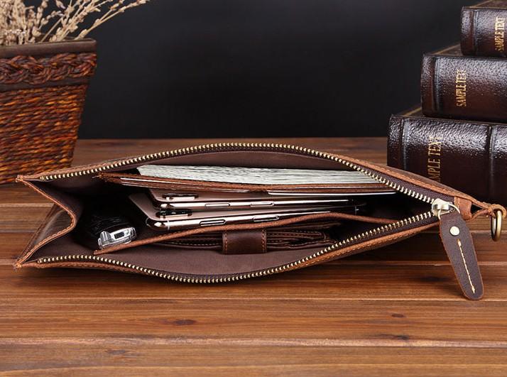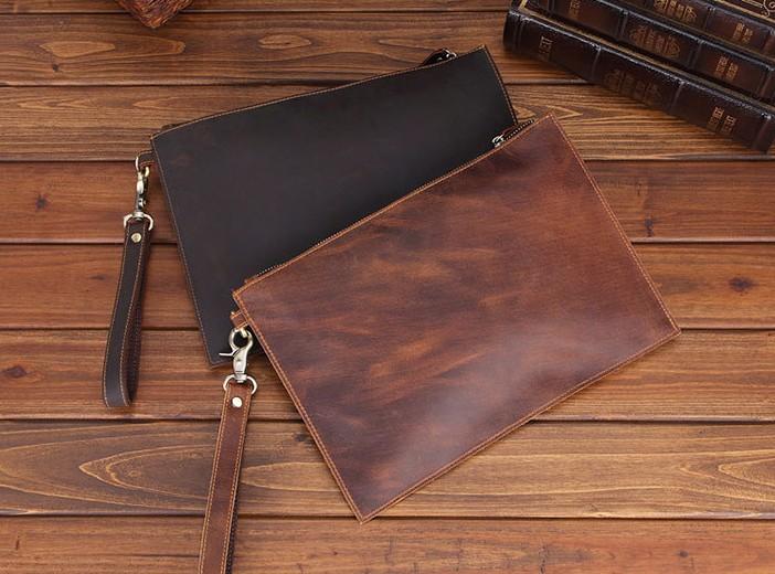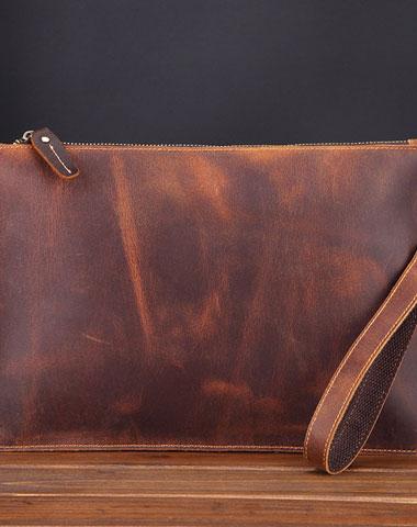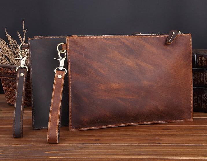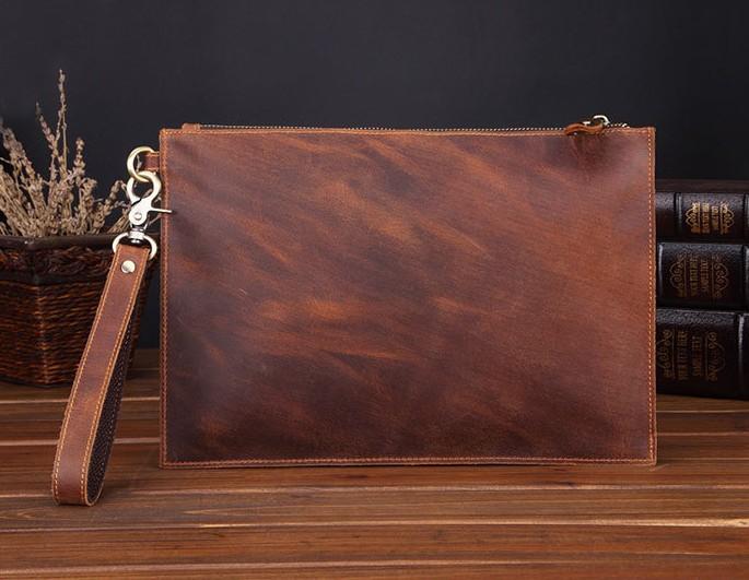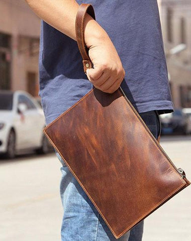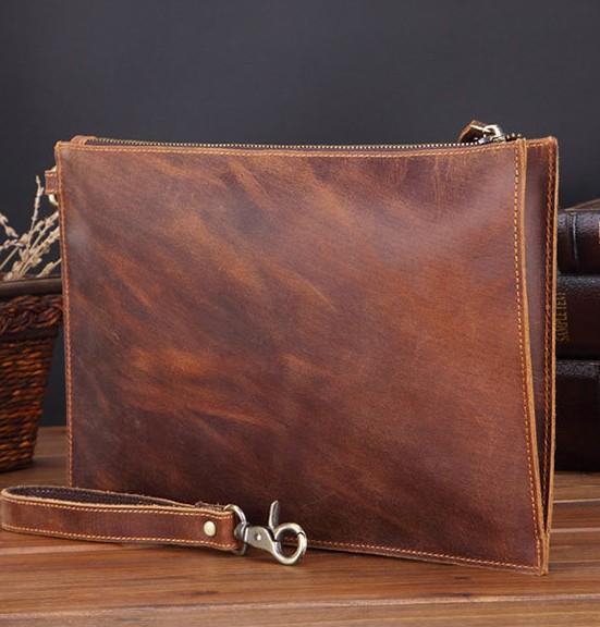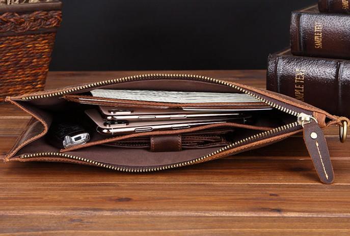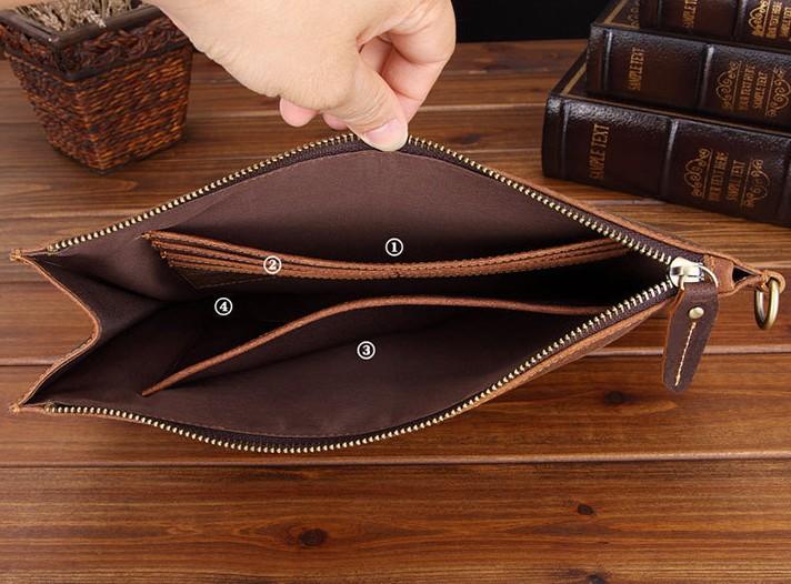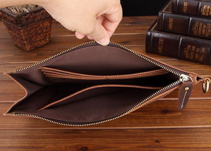 Design: Brown MENS LEATHER SLIM ZIPPER CLUTCH WRISTLET PURSE CLUTCH BAGs FOR MEN