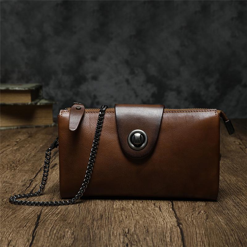 Design: Vintage Leather Long Wallet Clutch Shoulder Crossbody Bags Purses In Stock: 3-5 Days To Process Order Include: A Bag Custom: None Material: Cowhide Color: Brown, Red, Black Measures: 7.5 inch ( 19cm× 4cm× 11cm) Weight: 0.78 kg Slots: 1 zip main slot, 1 inner slot, 1 zip inner slot Style: Handmade Leather Bag Note: