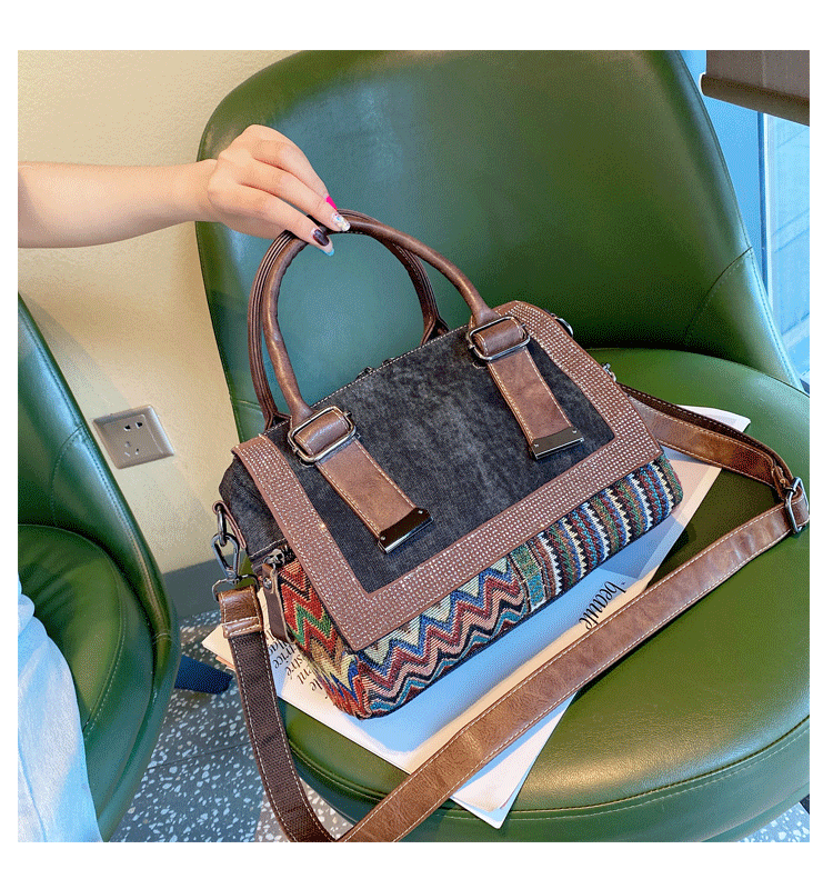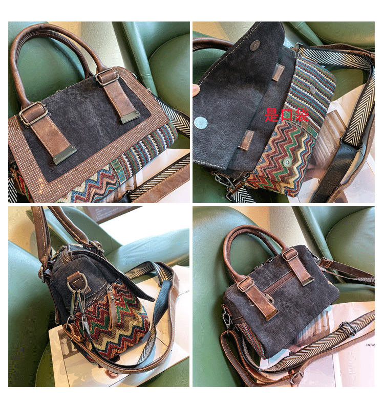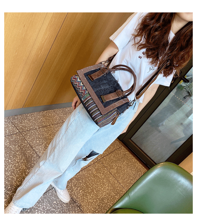 Style: Boho Handbag Boho Crossbody Bag Black Gray Canvas Ladies Handbags Canvas Boho Shoulder Bag