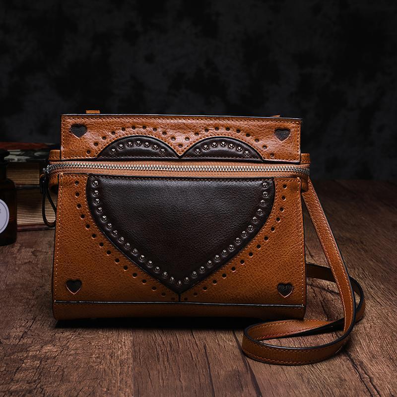 Design: Cute Genuine Leather Square Heart Shoulder Crossbody Bags Purses