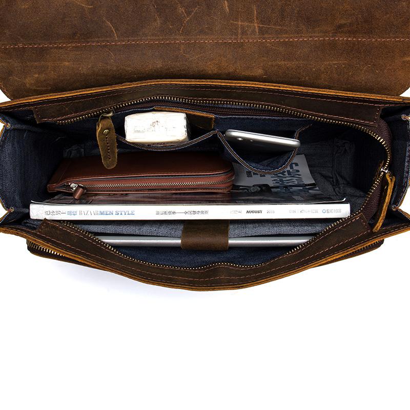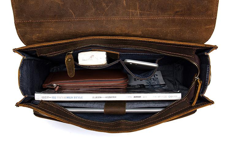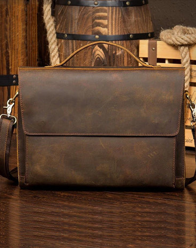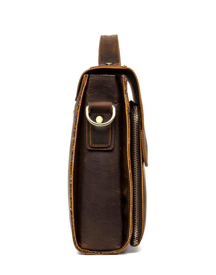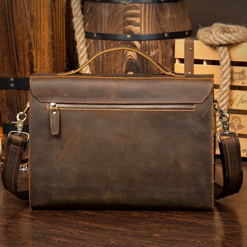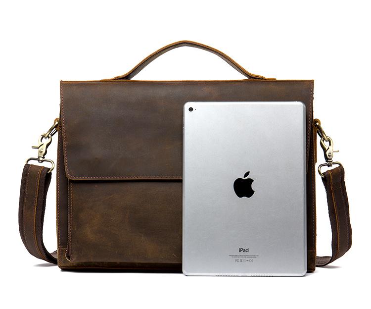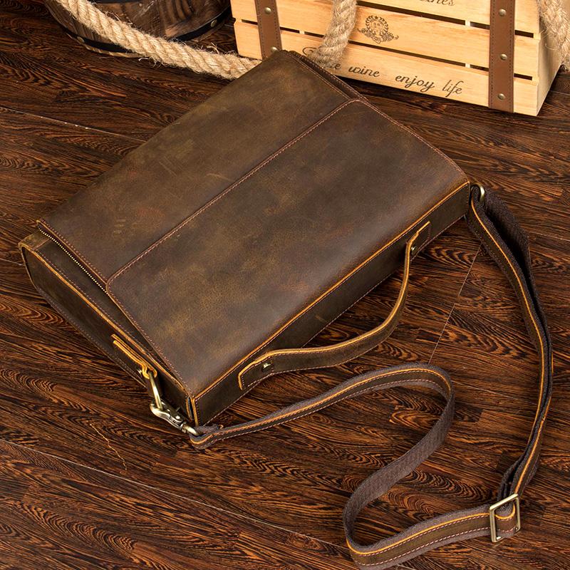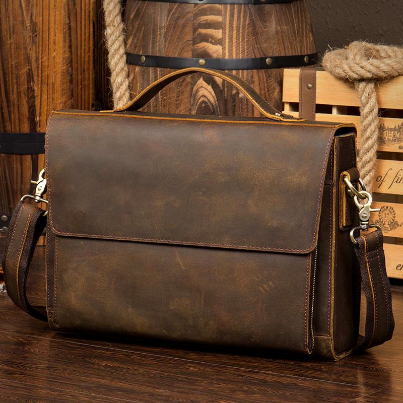 Style: Brown Leather Mens 14 inches Briefcase Laptop Bag Business Bags Work Bags for Men