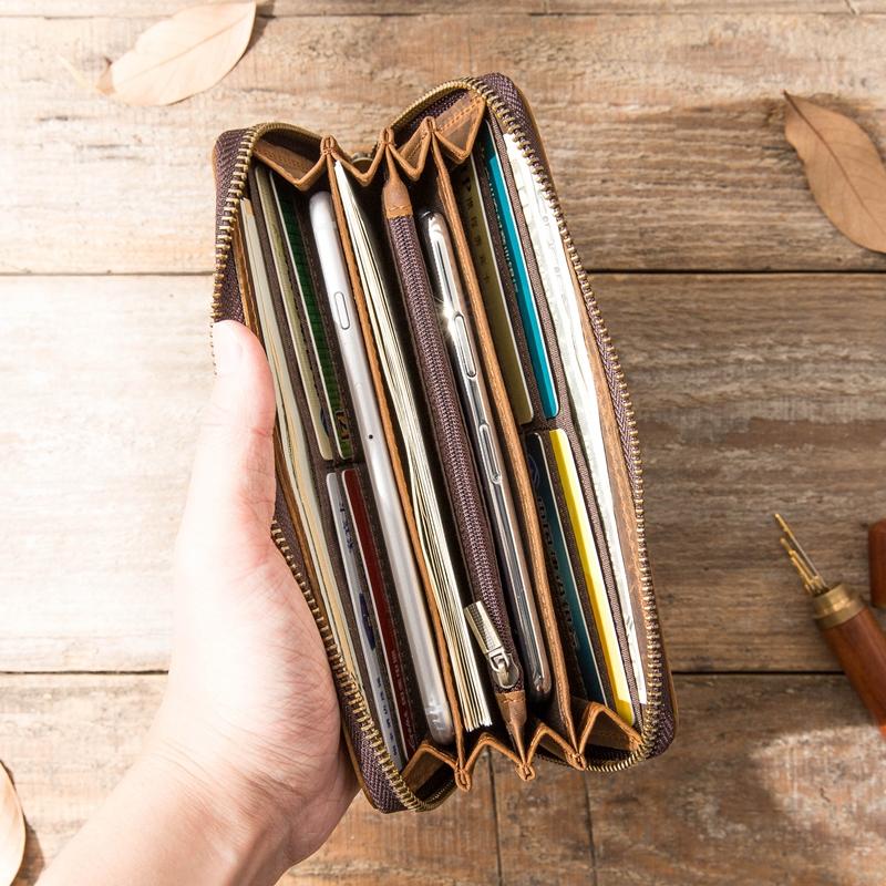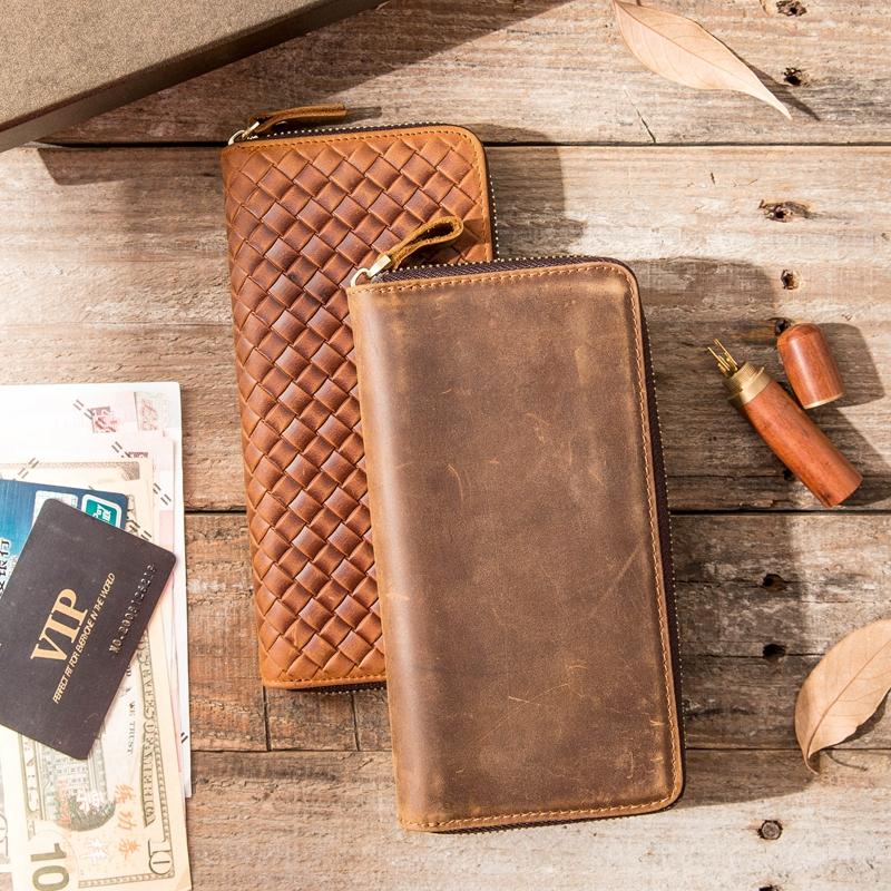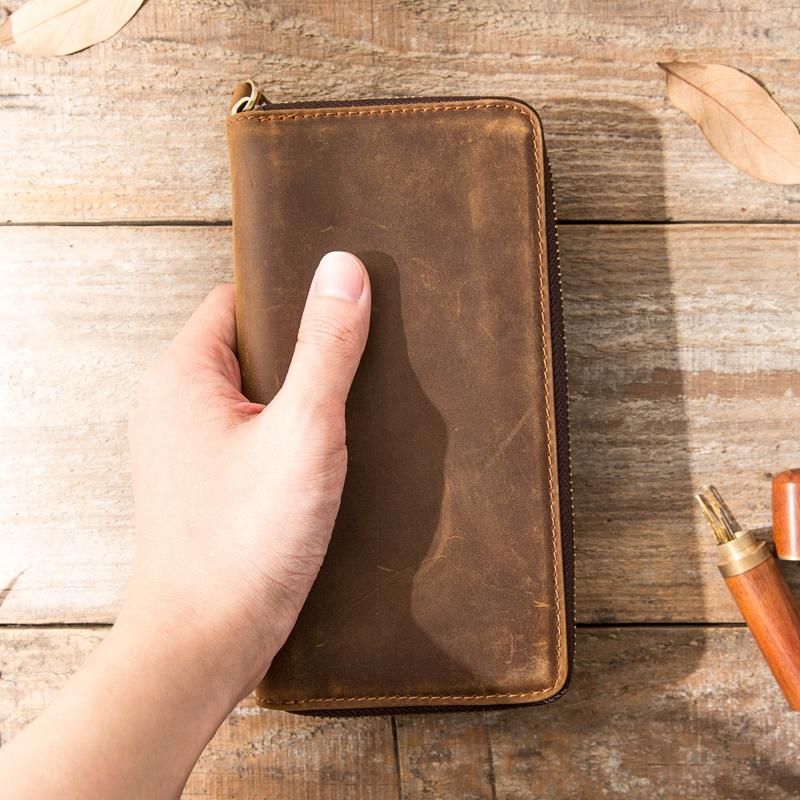 Style: Brown Vintage Cool Mens long Wallet Leather Wallet Bifold Long Wallets Phone Bag for Men