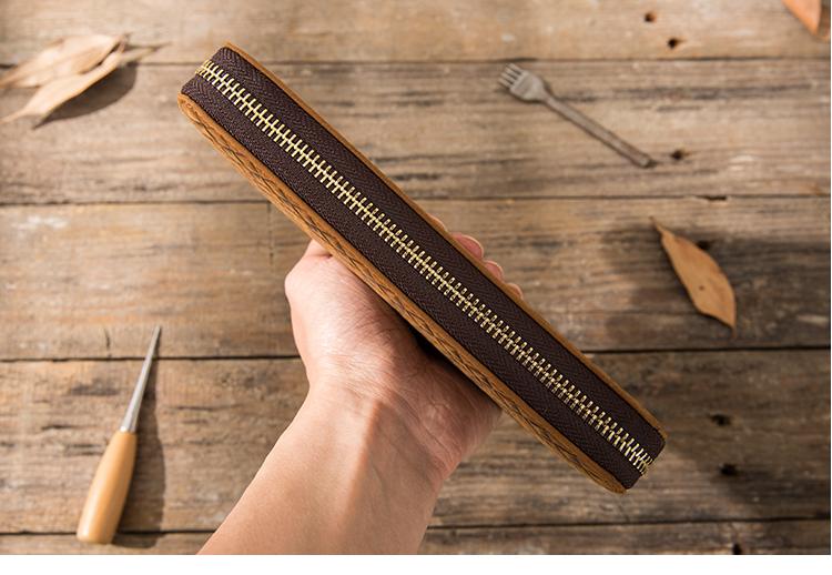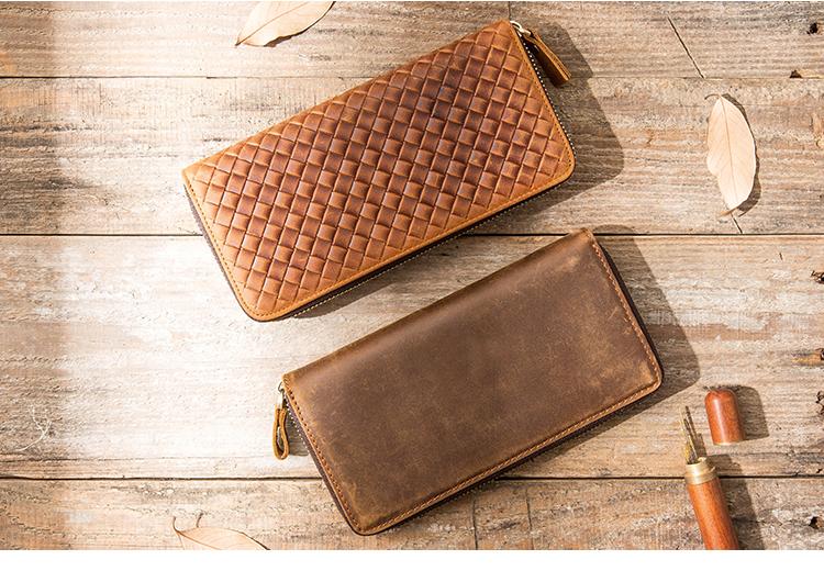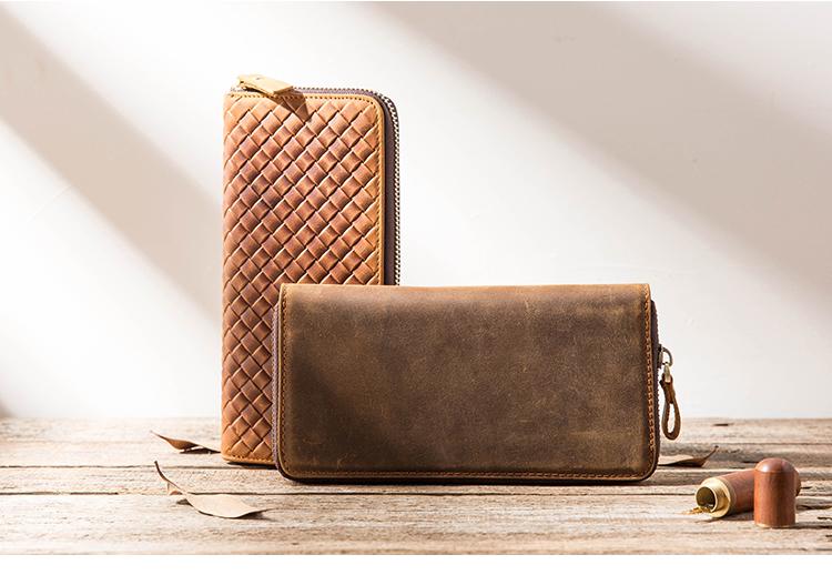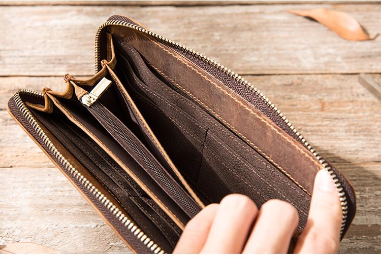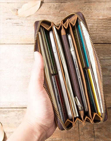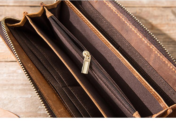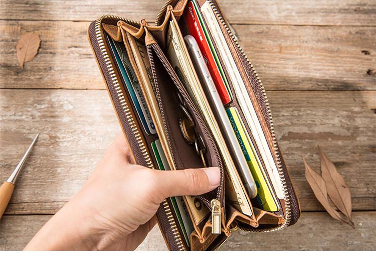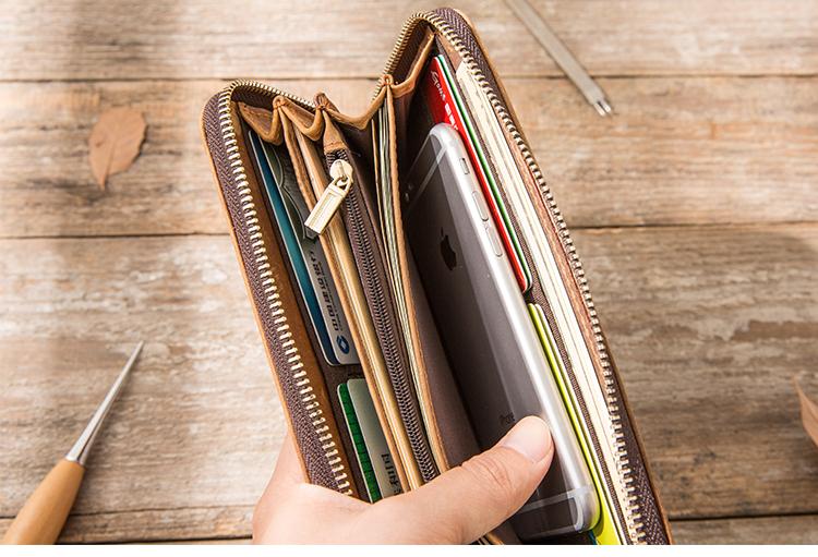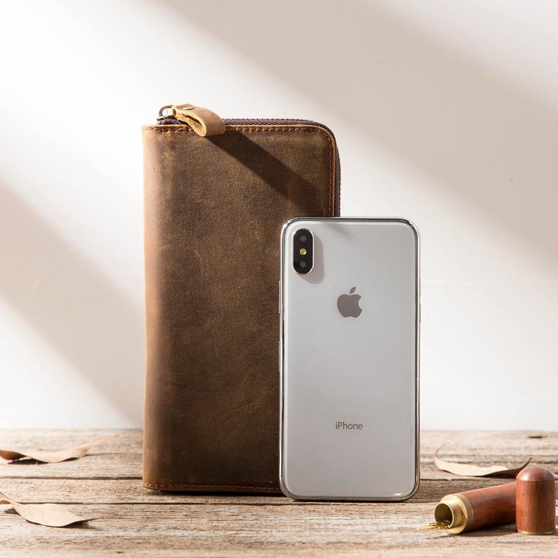 Design: Brown Vintage Cool Mens long Wallet Leather Wallet Bifold Long Wallets Phone Bag for Men