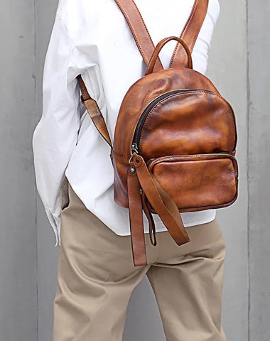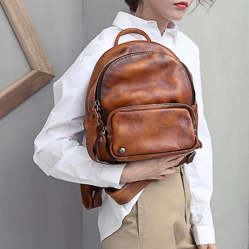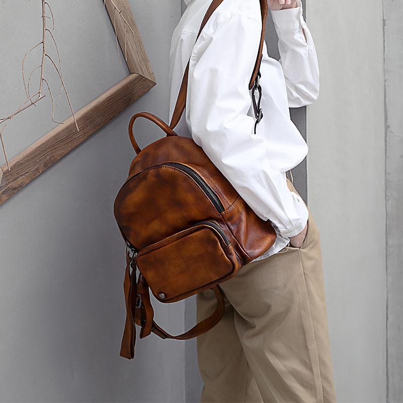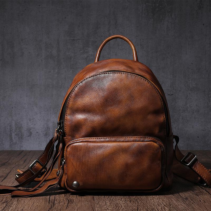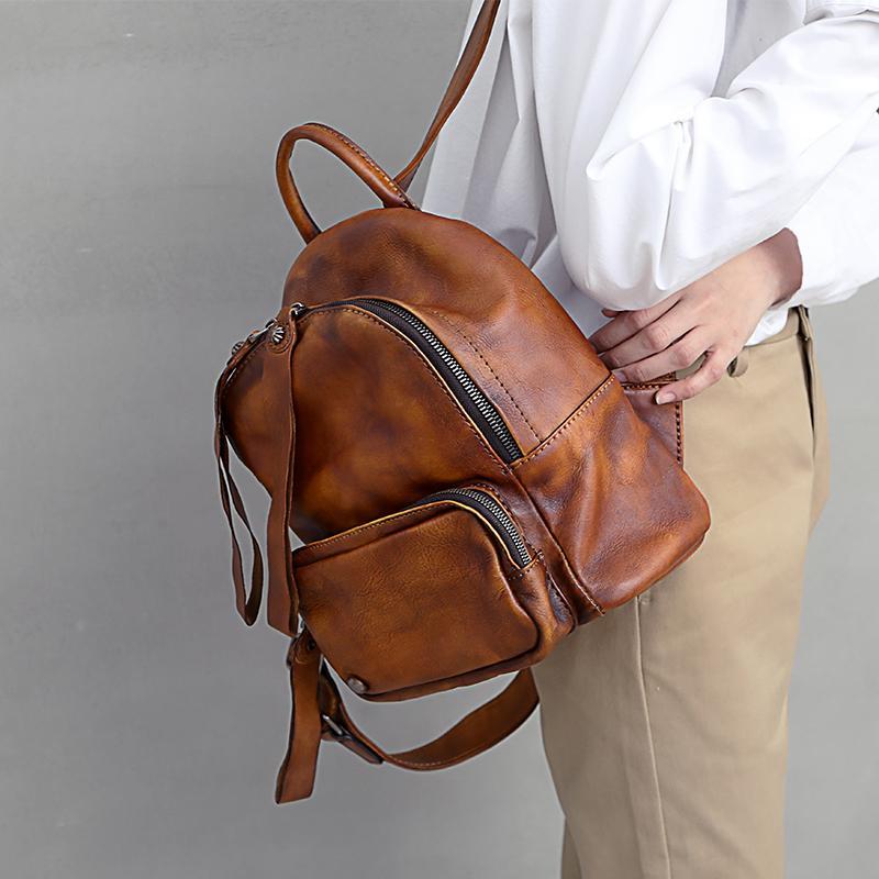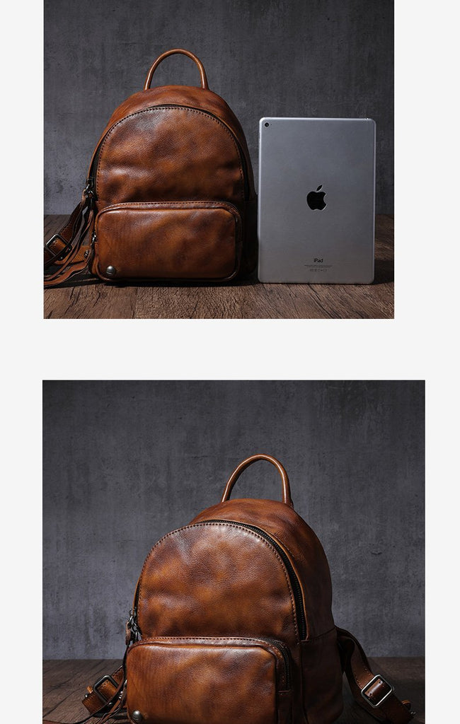 Design: Brown Small Leather Backpack for Women Brown Leather Backpack Leather Rucksack Backpack
