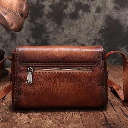 Vintage Womens Brown Leather Saddle Shoulder Bag Small Satchel Bag Crossbody Bag for Ladies
