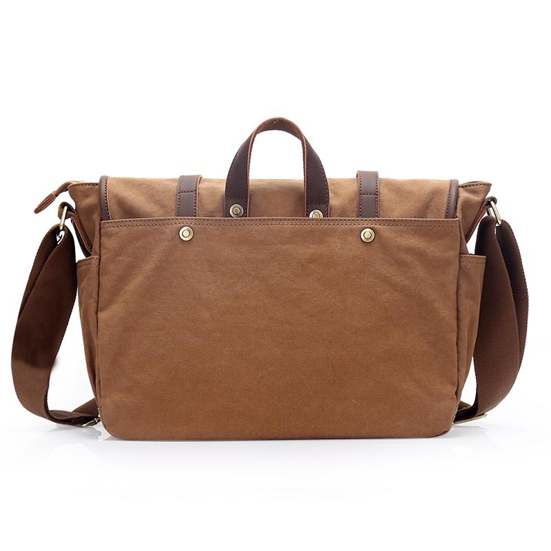 Design: Canvas Leather Mens Womens 14" Portable Khaki Messenger Bag Shoulder Bag Dark Gray Side Bag for Men