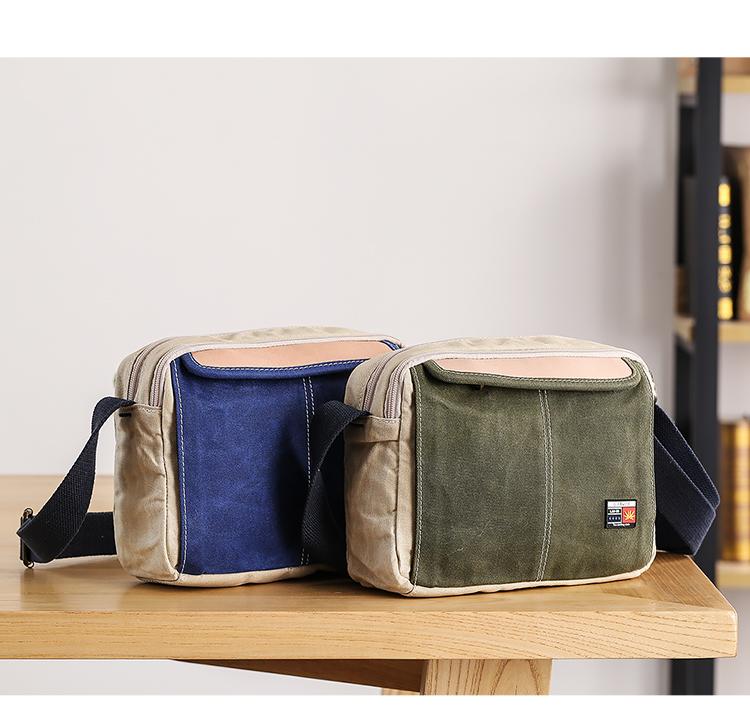 Canvas Leather Mens Womens Green Small 10'' Side Bag Blue Messenger Bag Small Shoulder Bag For Men