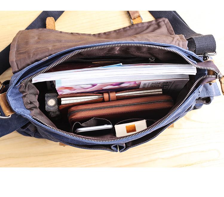 Style: Canvas Leather Mens Womens Waterproof Handbag Bag Shoulder Bag Blue Messenger Bag For Men
