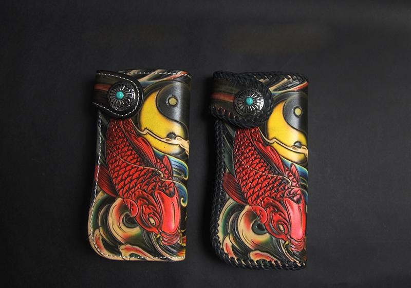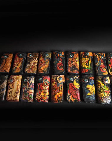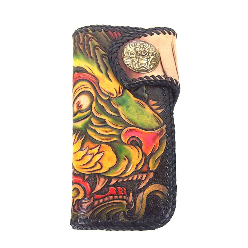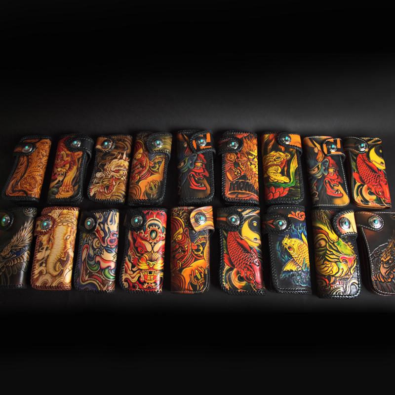 Design: Carved Handmade Leather Mens Long Wallets Card Wallet Clutch Wallet For Men