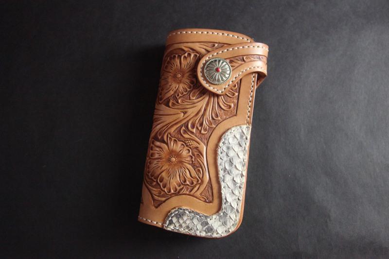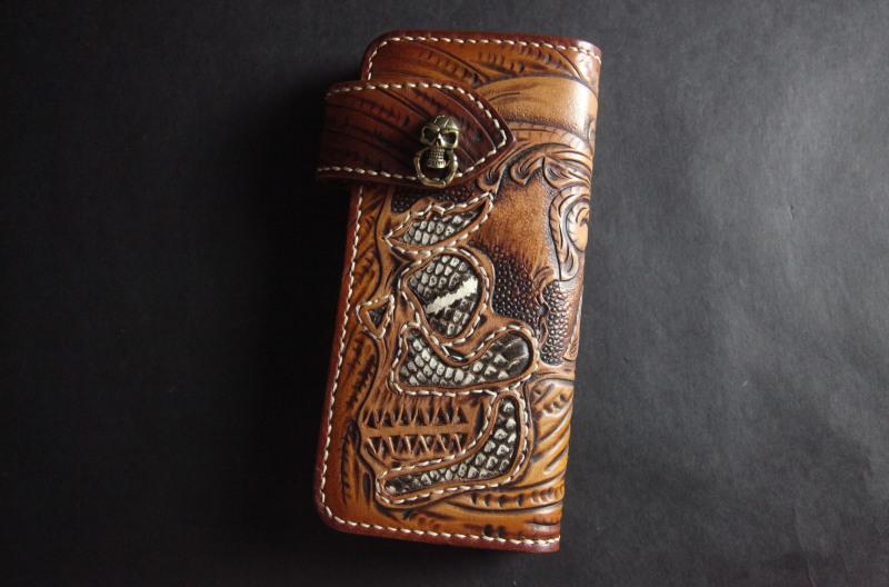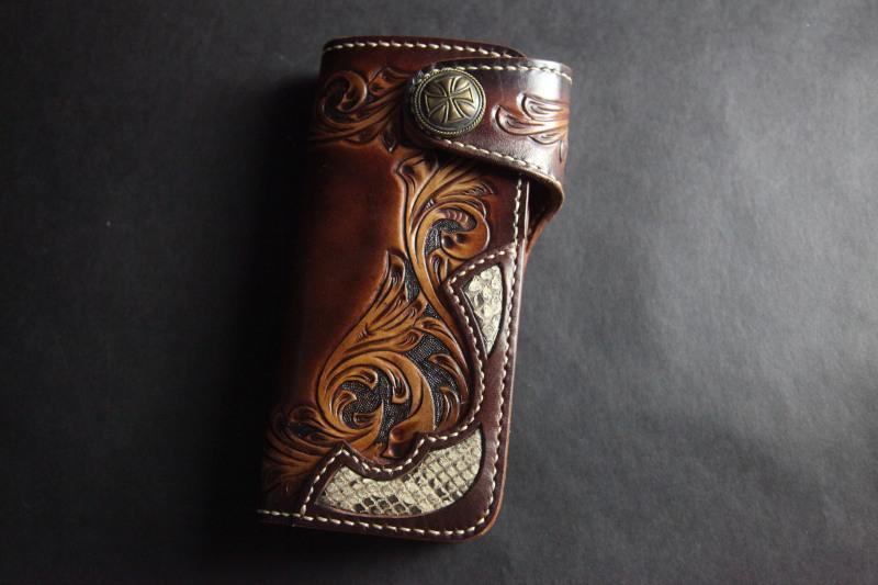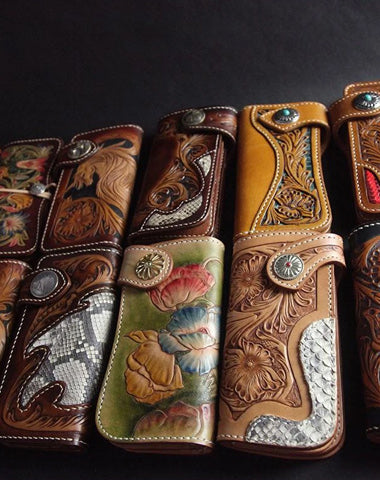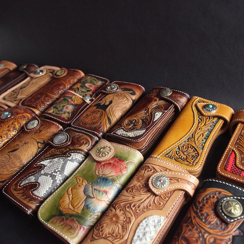 Style: Carved Handmade Leather Mens Long Wallets Card Wallet Clutch Wallets For Men