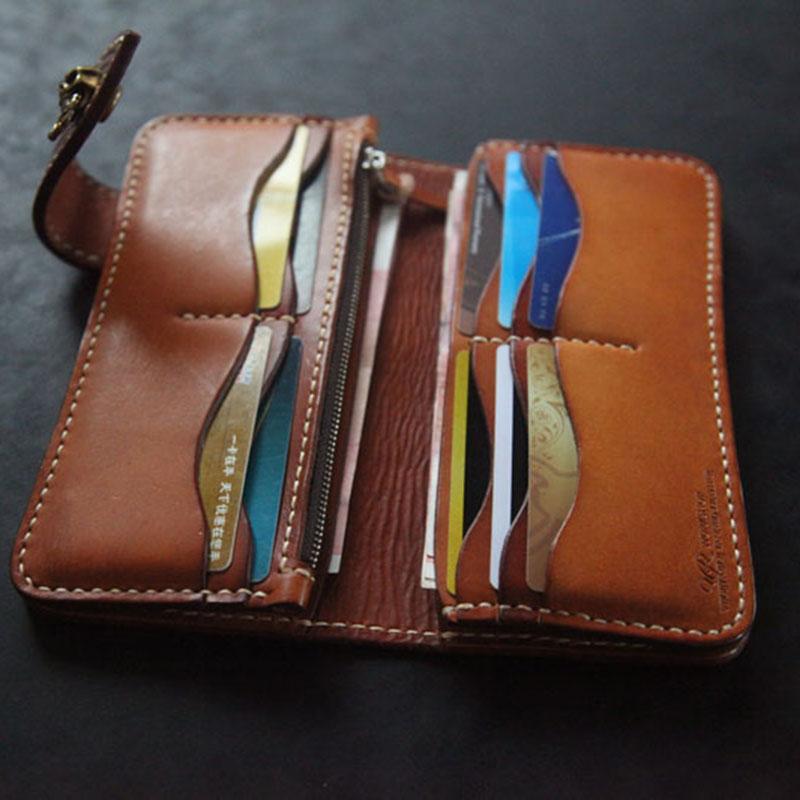 Design: Carved Handmade Leather Mens Long Wallets Card Wallet Clutch Wallets For Men