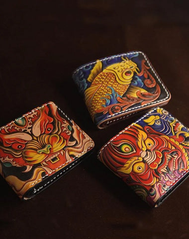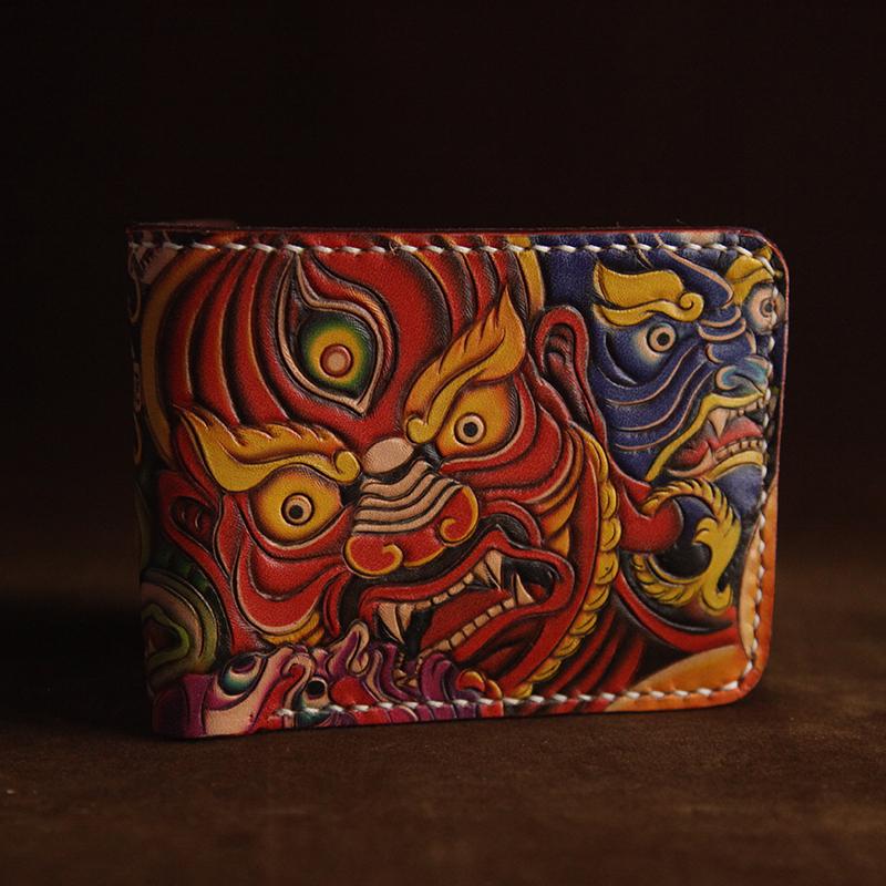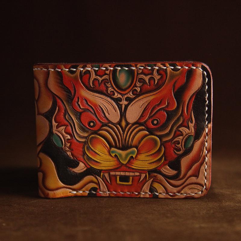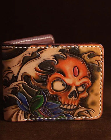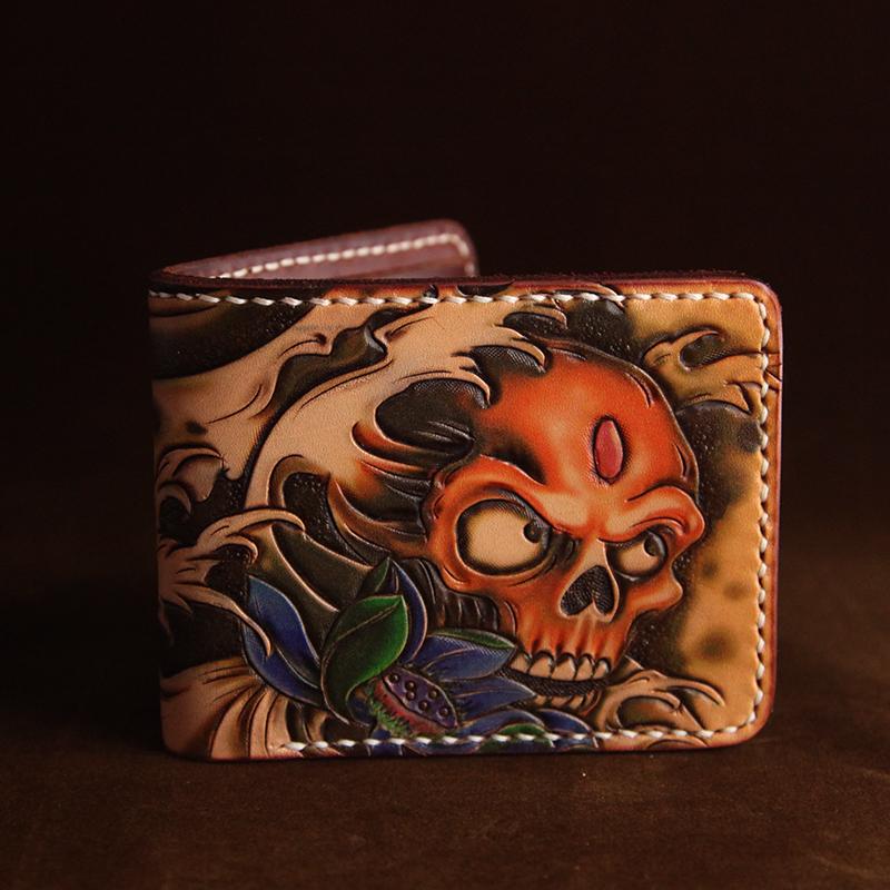 Design: Handmade Tooled Leather Mens Skull billfold Wallets Bifold Wallet Small Wallet For Men