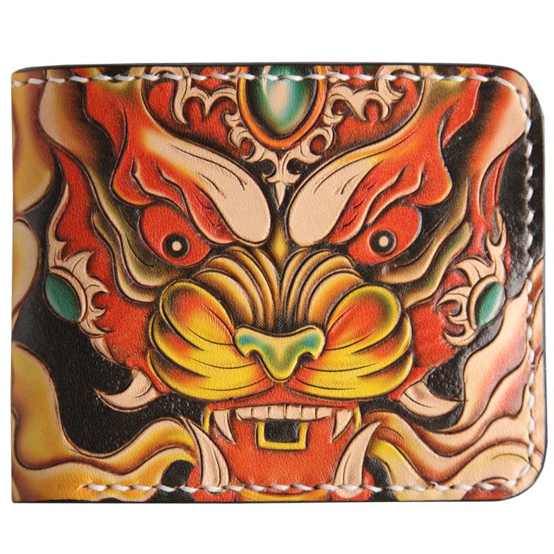 Style: Handmade Tooled Leather Mens Skull billfold Wallets Bifold Wallet Small Wallet For Men