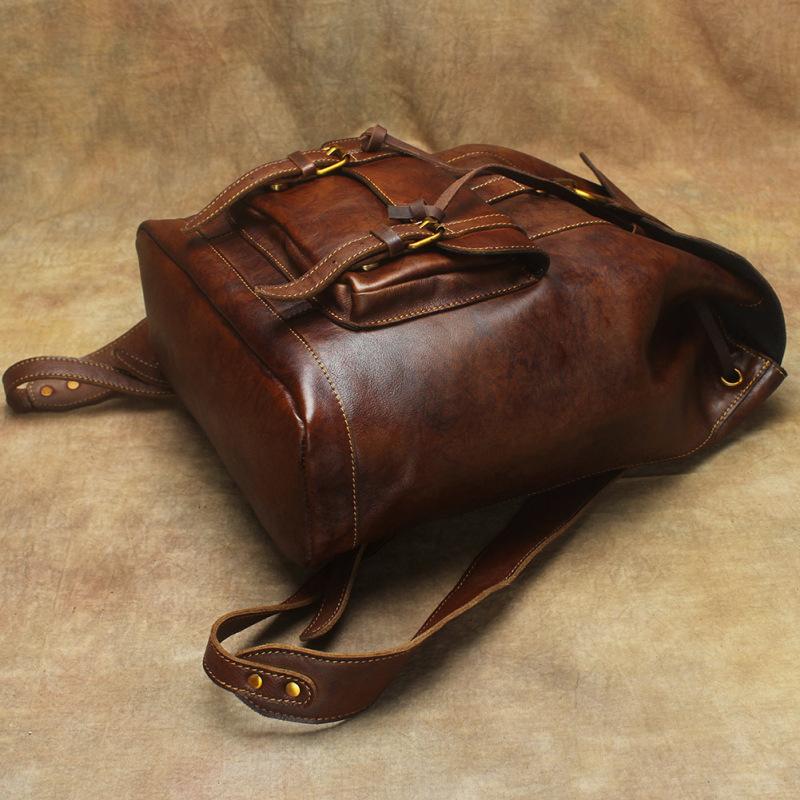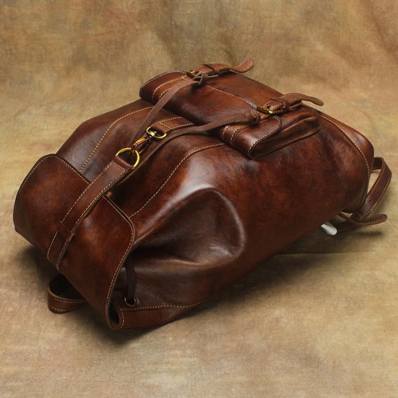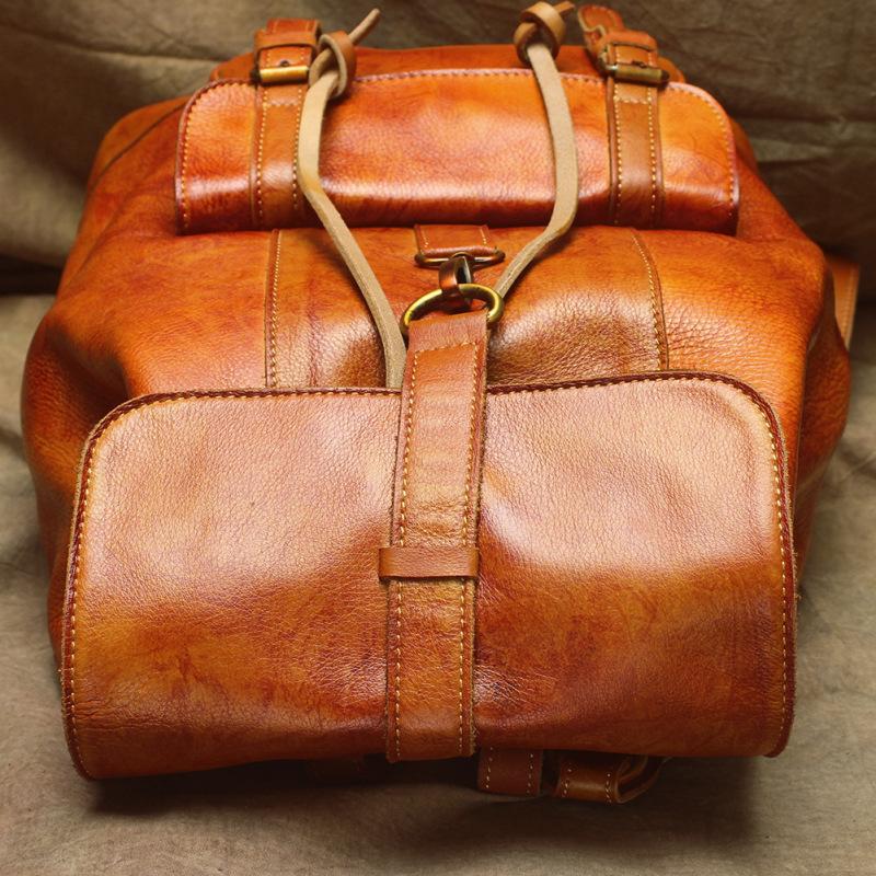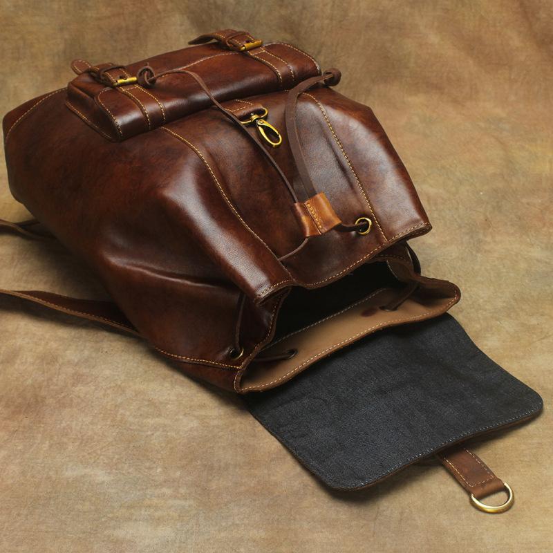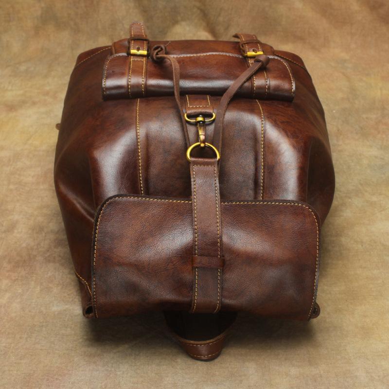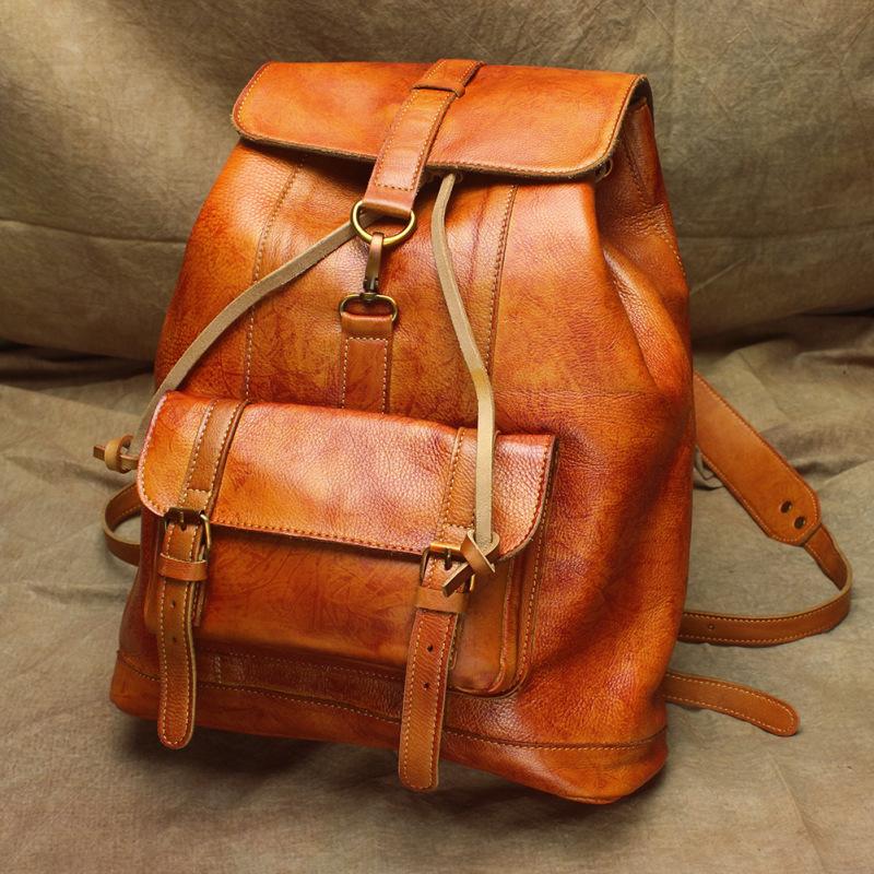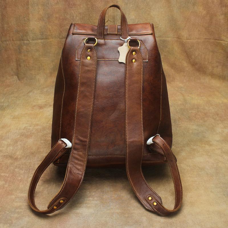 Design: Casual Brown Leather Men's Backpack College Backpack 14inch Laptop Backpack For Men and WomenOverview: