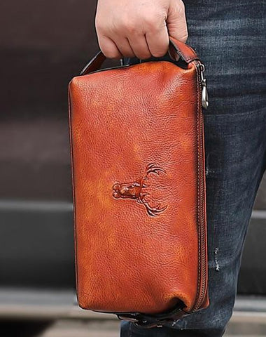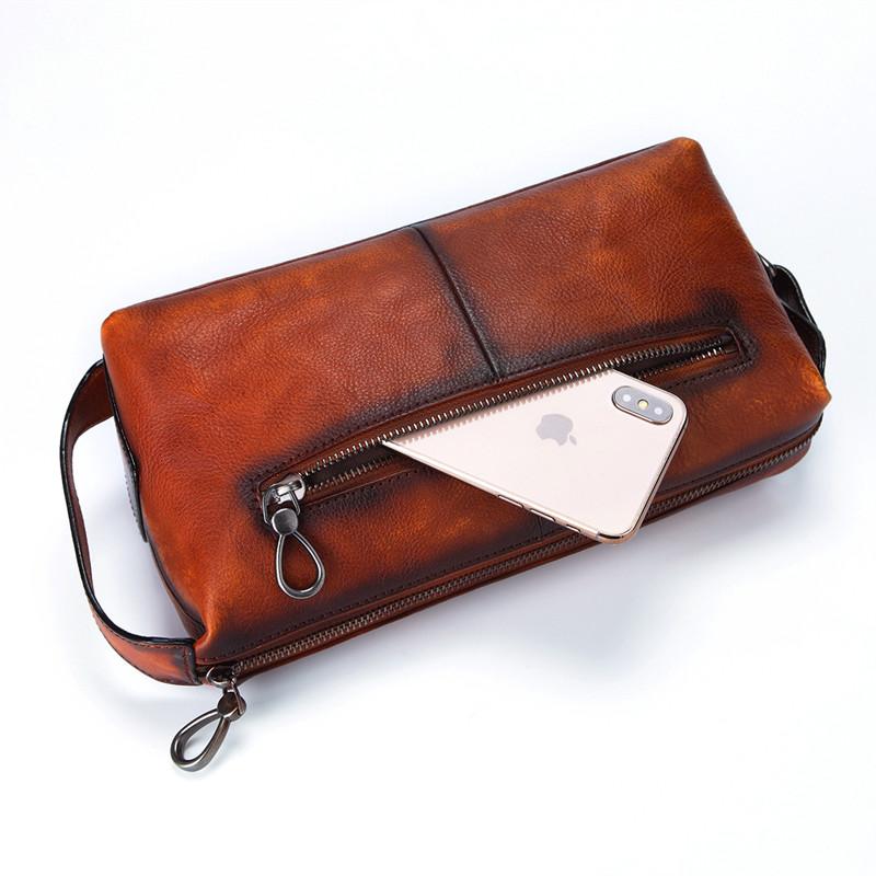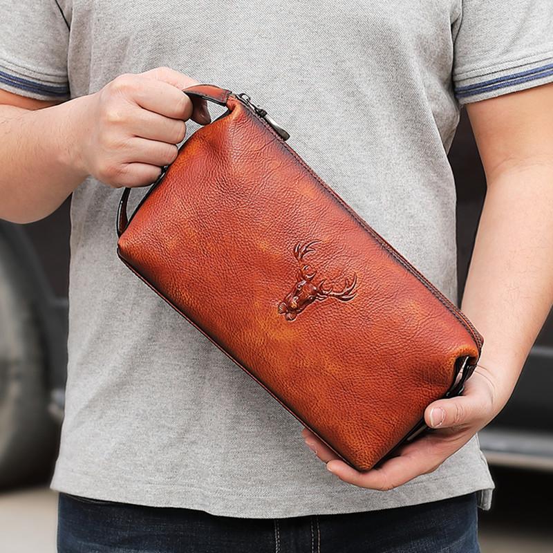 Style: Cool Brown Leather Men's Clutch Bag Clutch Purse Business Handbag For Men