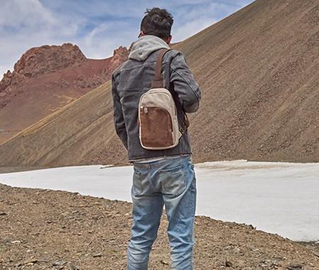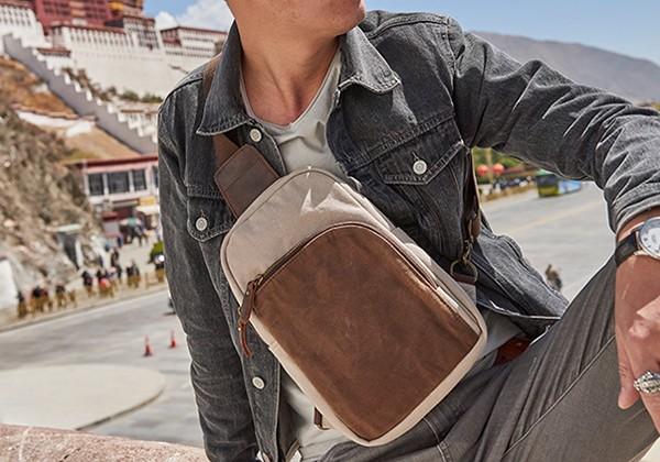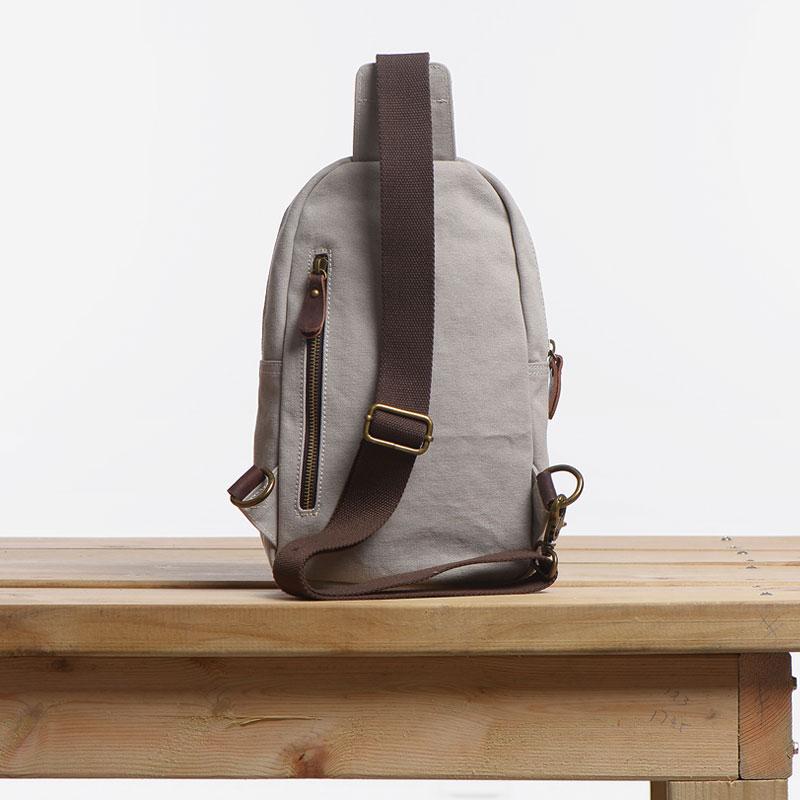 Design: Cool Canvas Gray Mens Sling Bag Chest Bag One Shoulder Pack for men
