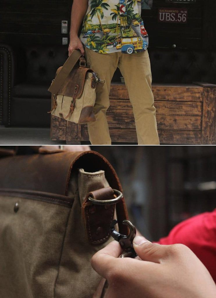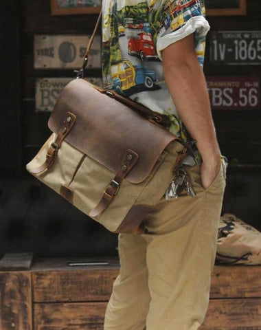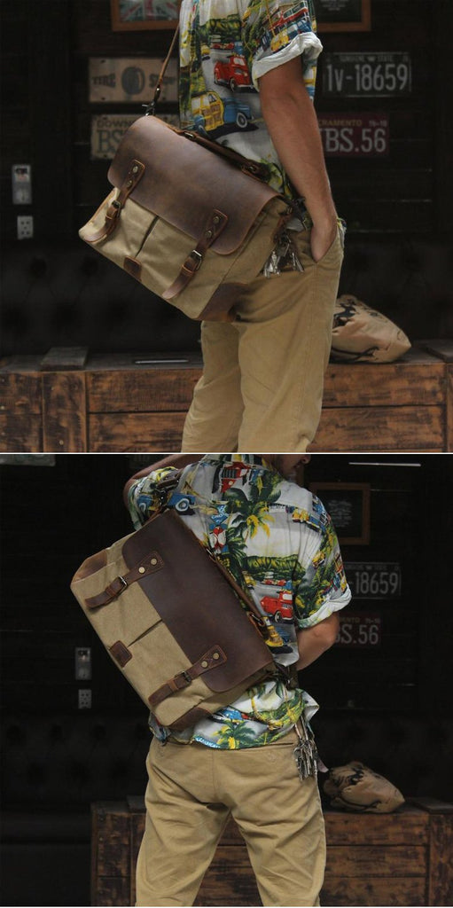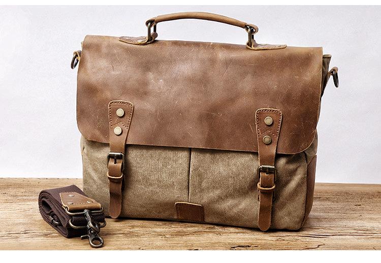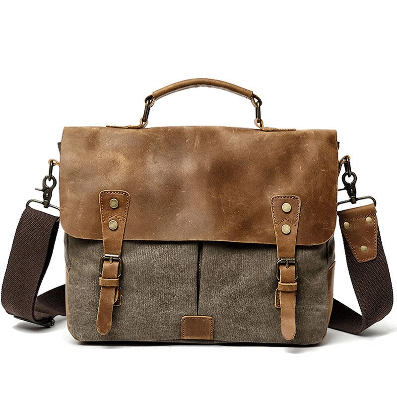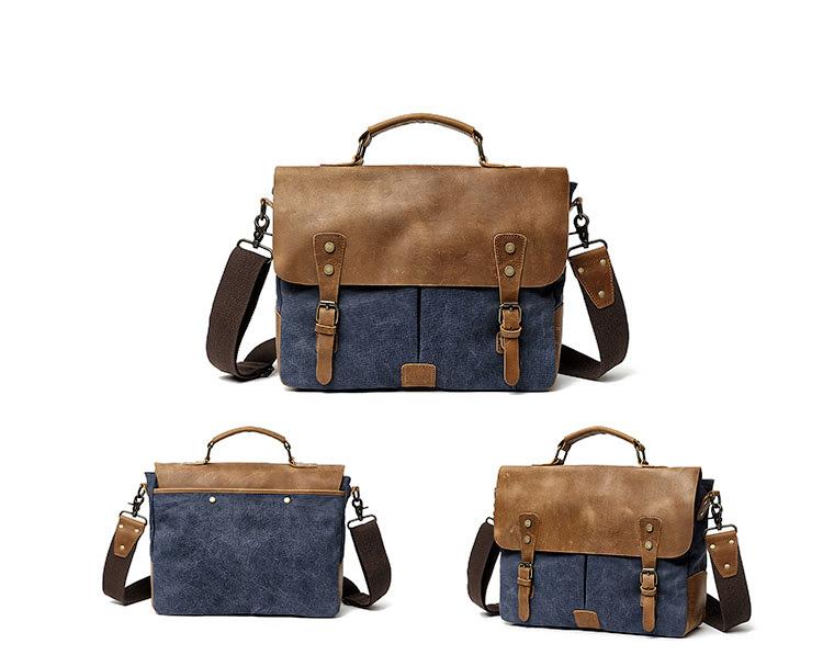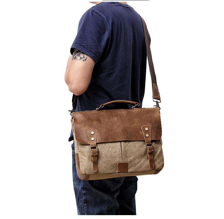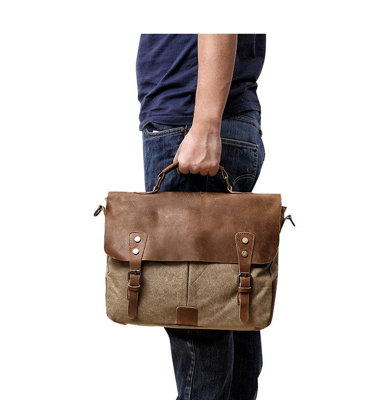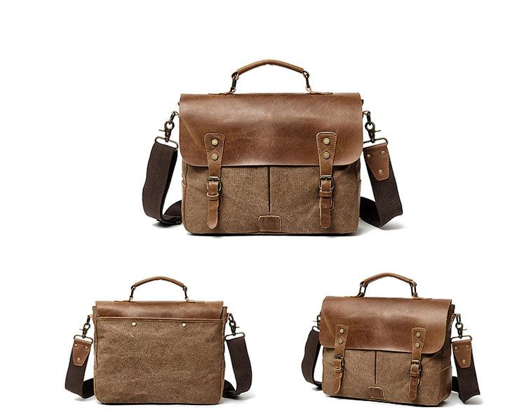 Style: Cool Canvas Leather Mens Casual Briefcase Computer Bag Messenger Bag Backpack For Men