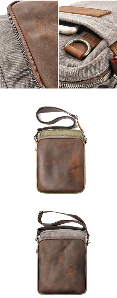 Cool Canvas Leather Mens Vertical Small Side Bag Gray Messenger Bag for Men