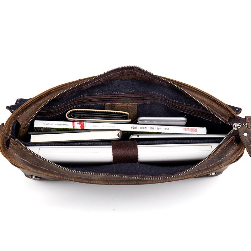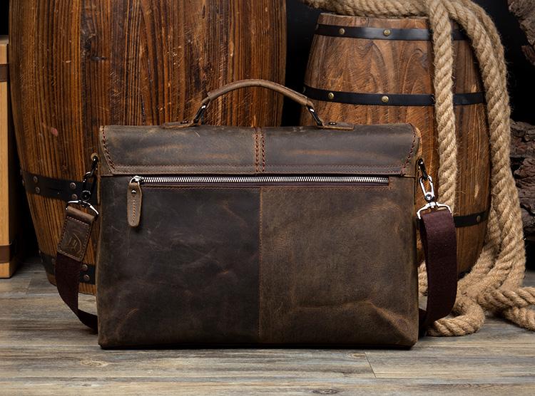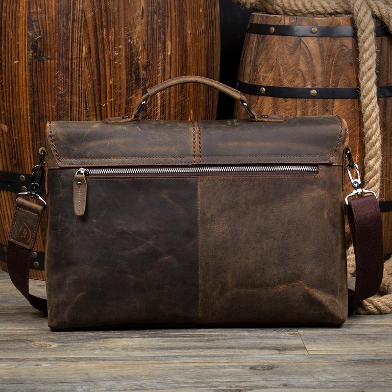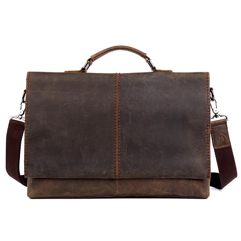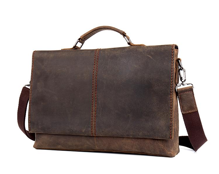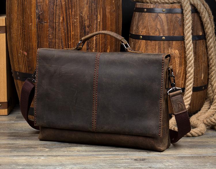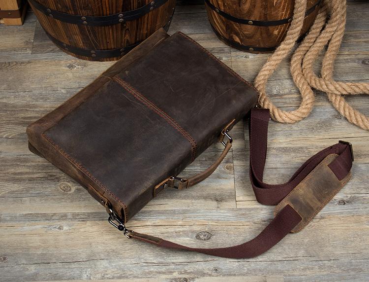 Design: Cool Dark Brown Leather Mens 15 inches Briefcase Laptop Bag Business Side Bags Work Bag for Men