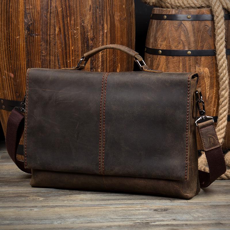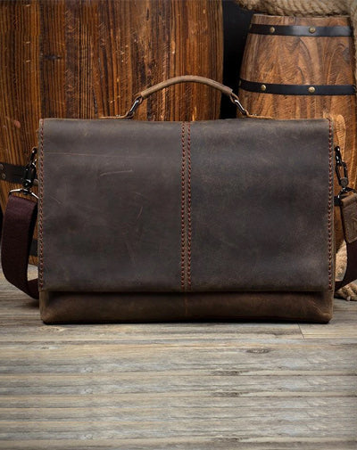 Style: Cool Dark Brown Leather Mens 15 inches Briefcase Laptop Bag Business Side Bags Work Bag for Men