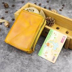 Style: Cool Dark Gray Handmade Leather Men's Yellow Zipper billfold Wallet Bifold Card Wallet For Men