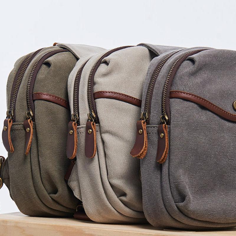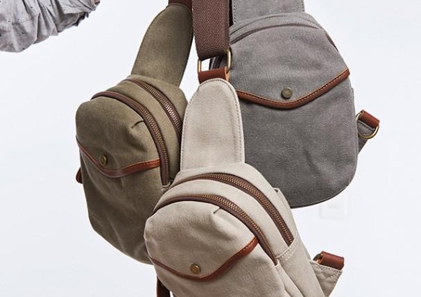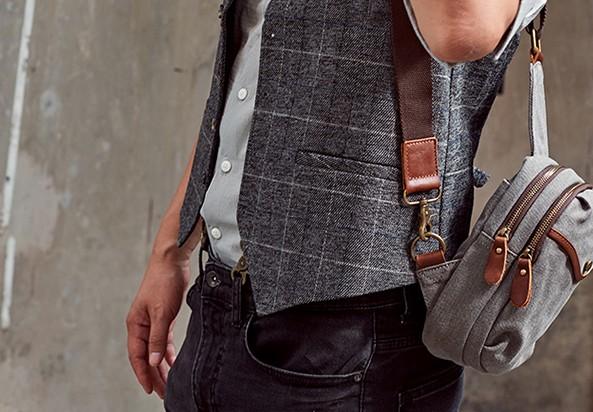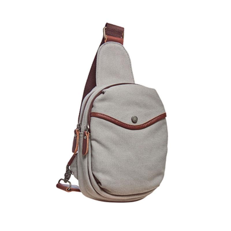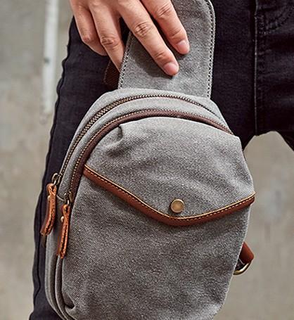 Design: Cool Gray Canvas Leather Mens Sling Bag Chest Bag One Shoulder Pack for men