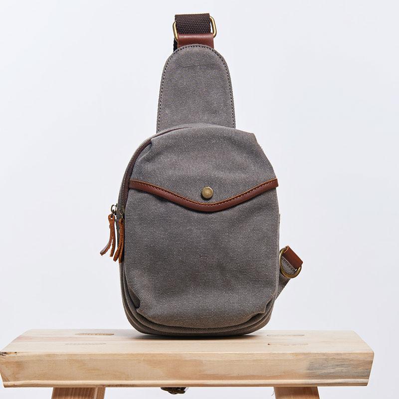 Style: Cool Gray Canvas Leather Mens Sling Bag Chest Bag One Shoulder Pack for men