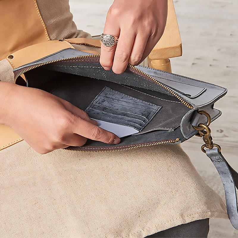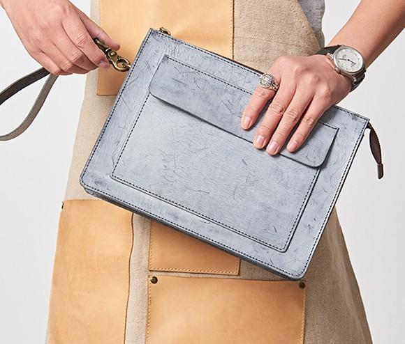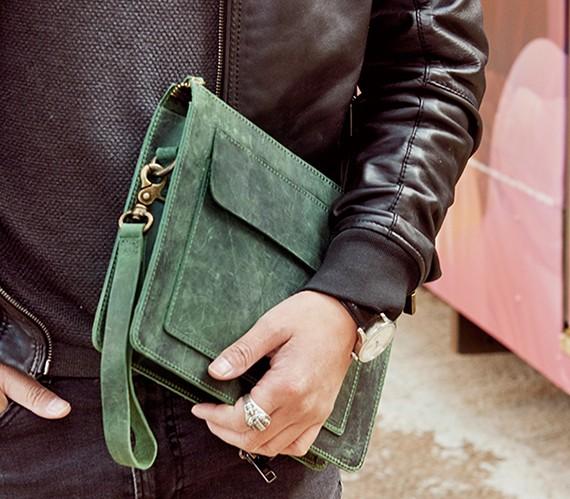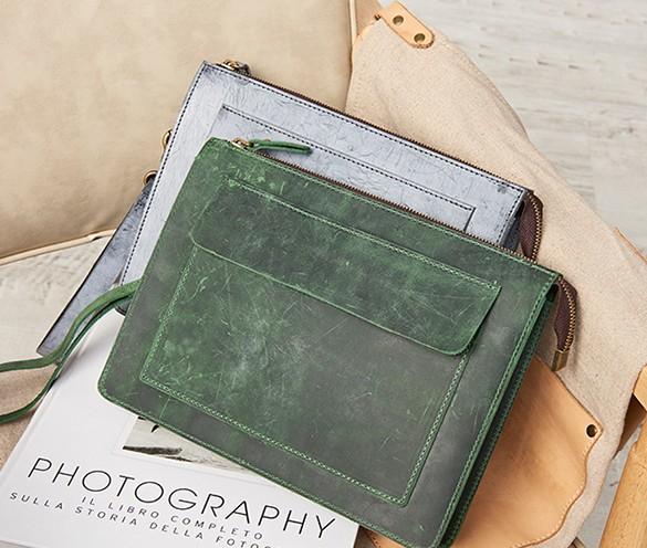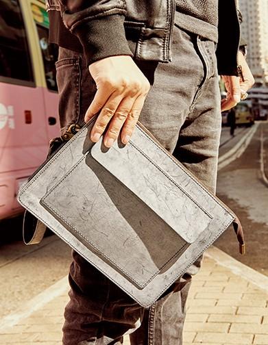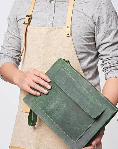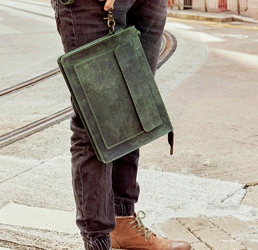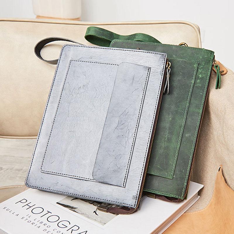 Design: Cool Leather Large Mens Wristlet Bag Vintage Clutch Zipper Bag for Men