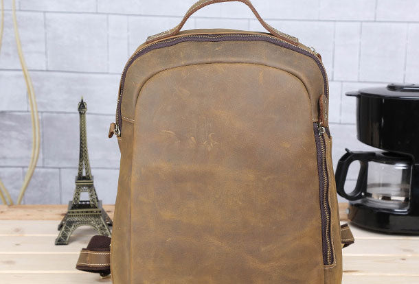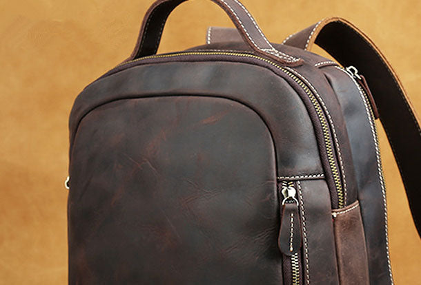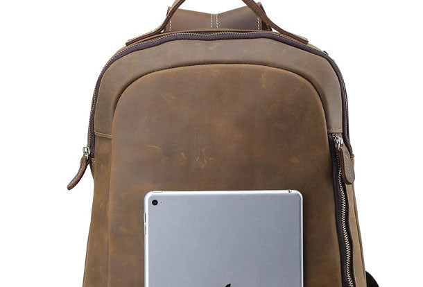 Design: Cool Leather Mens Backpack Large Vintage Travel Bag for MenOverview: